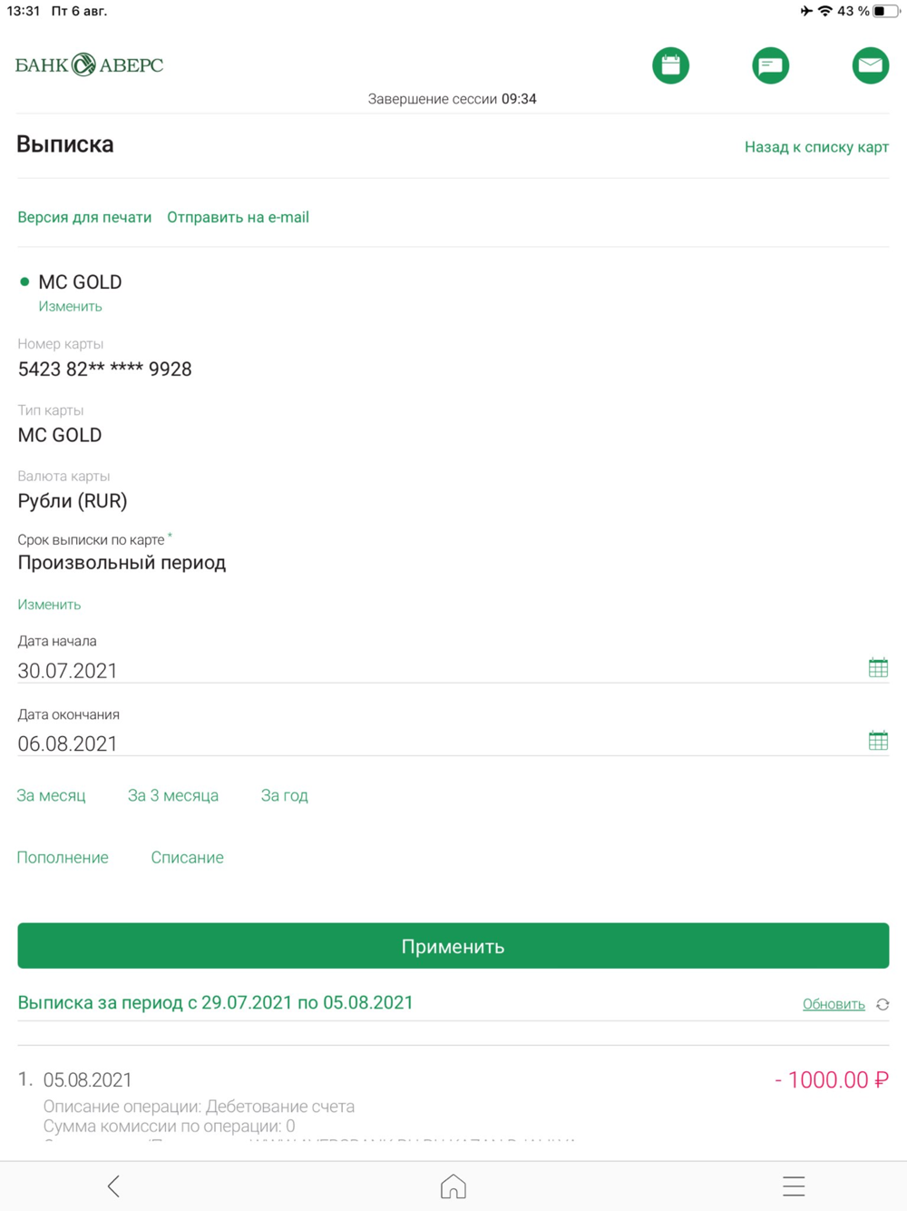 - информация об остатках и движении средств на счетах и банковских картах без обращения в офис Банка