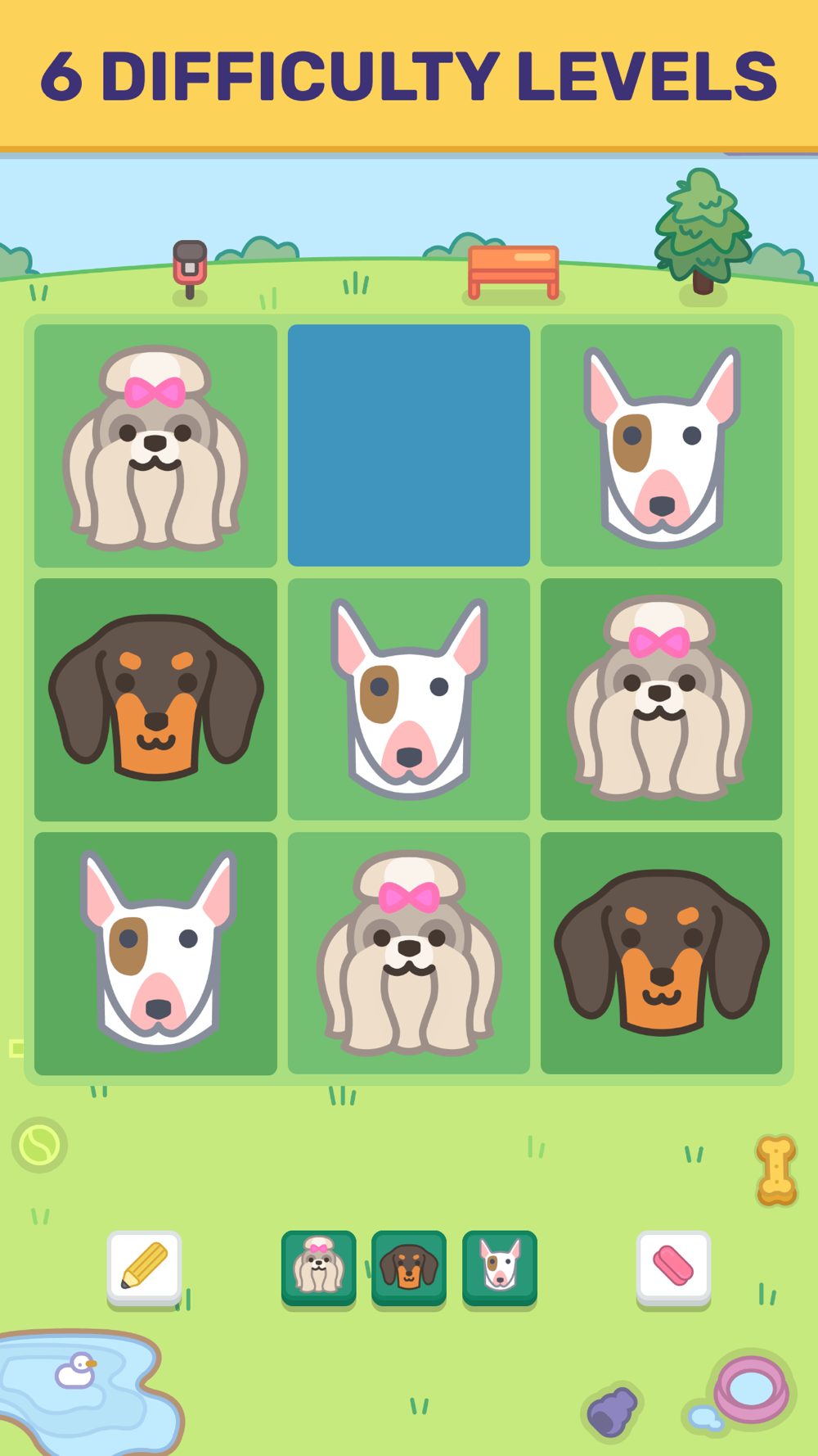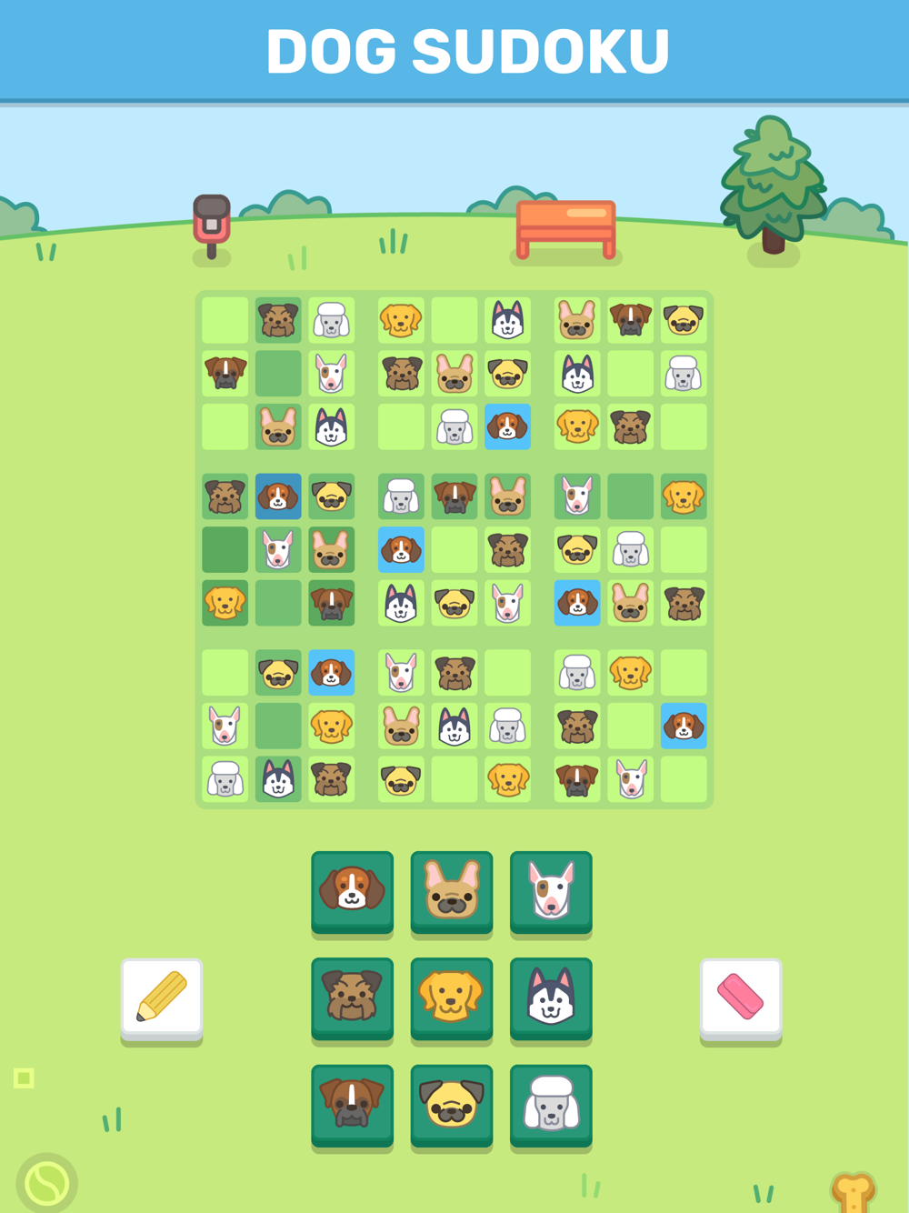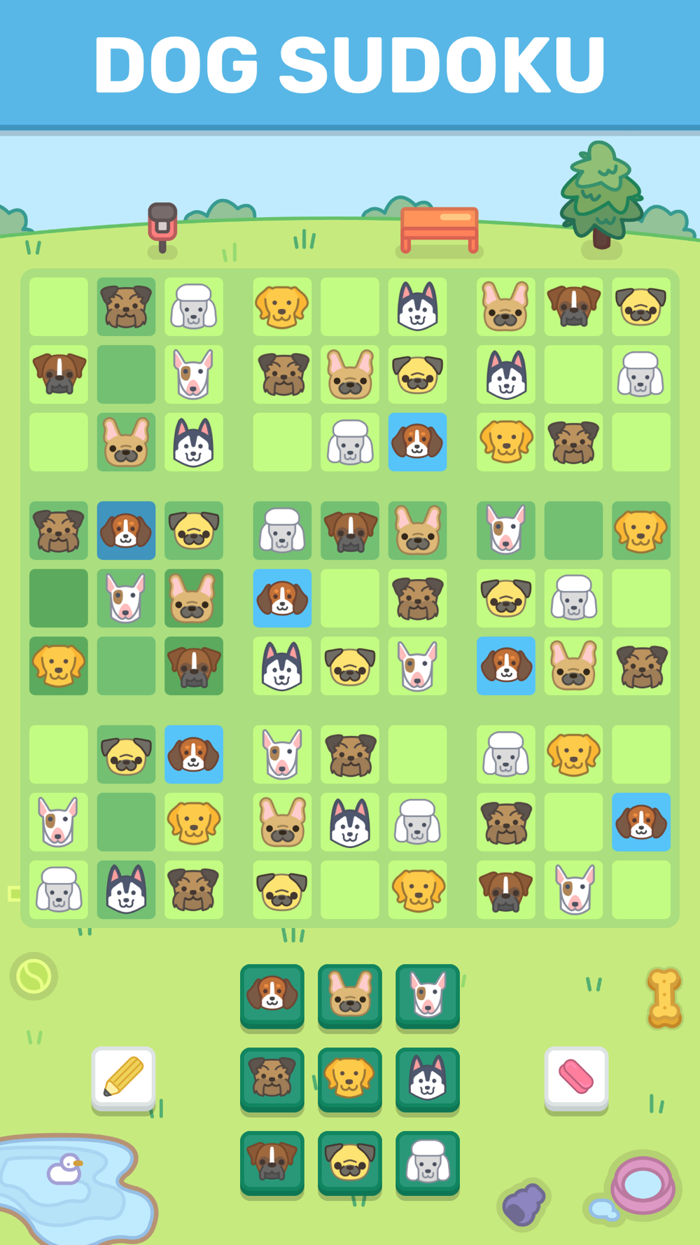 Classic Sudoku is a logic-based number puzzle game and the goal is to place 1 to 9 dog tiles into each grid cell so that each dog can only appear once in each row, once in each column and once in each mini-grid. With our Sudoku puzzle app, you can not only enjoy sudoku games anytime anywhere, but also learn Sudoku techniques.