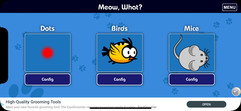 Meow, What? is a free collection of 6 different games designed just for cats!