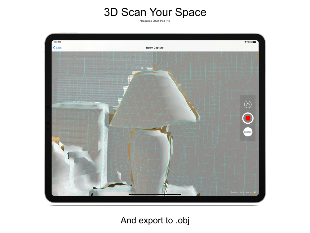 Have a 2020 iPad Pro? With Track: Scan & Record, you can generate 3D scans of your environment with your device's new LiDAR sensor. Then, using the power of ARKit, you can record video alongside camera tracking data. And, by simply printing out an anchor and place it in your environment, your scans and camera-tracking data will be aligned for export to other 3D programs.
