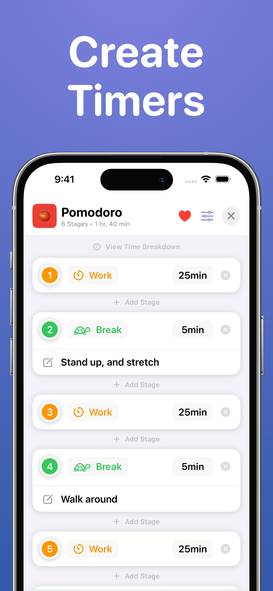 Add structure with Work, Break, and Planning stages, so you can always work at your best