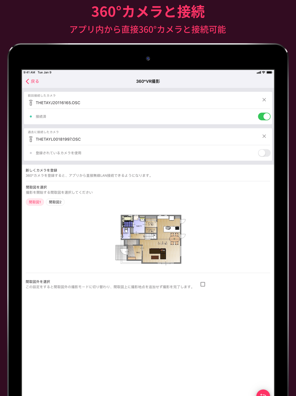 事業者の物件管理と連携し、その物件のVR撮影を、会社内の現場担当の撮影者や、外部の撮影事業者に依頼する形でのタスク管理が可能です。
