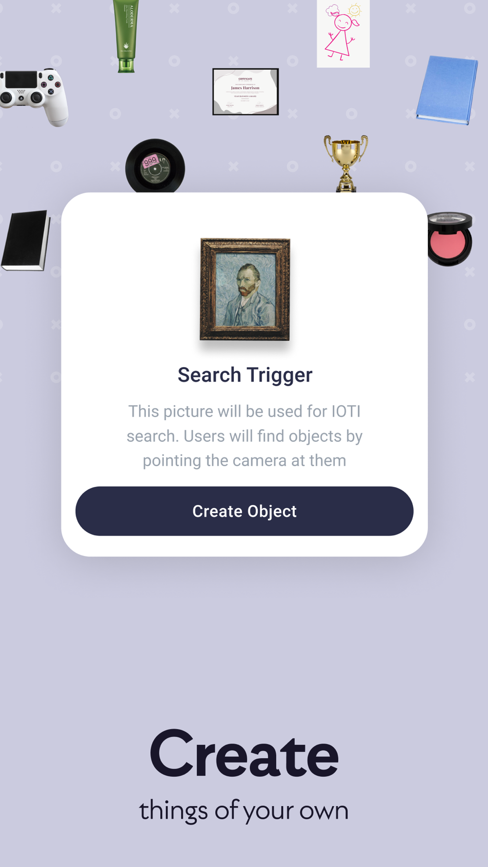 Create interesting content around real objects. You can display your content directly on physical objects and share this information with the whole world. Link your website, social profile, video, review, etc to a physical object!