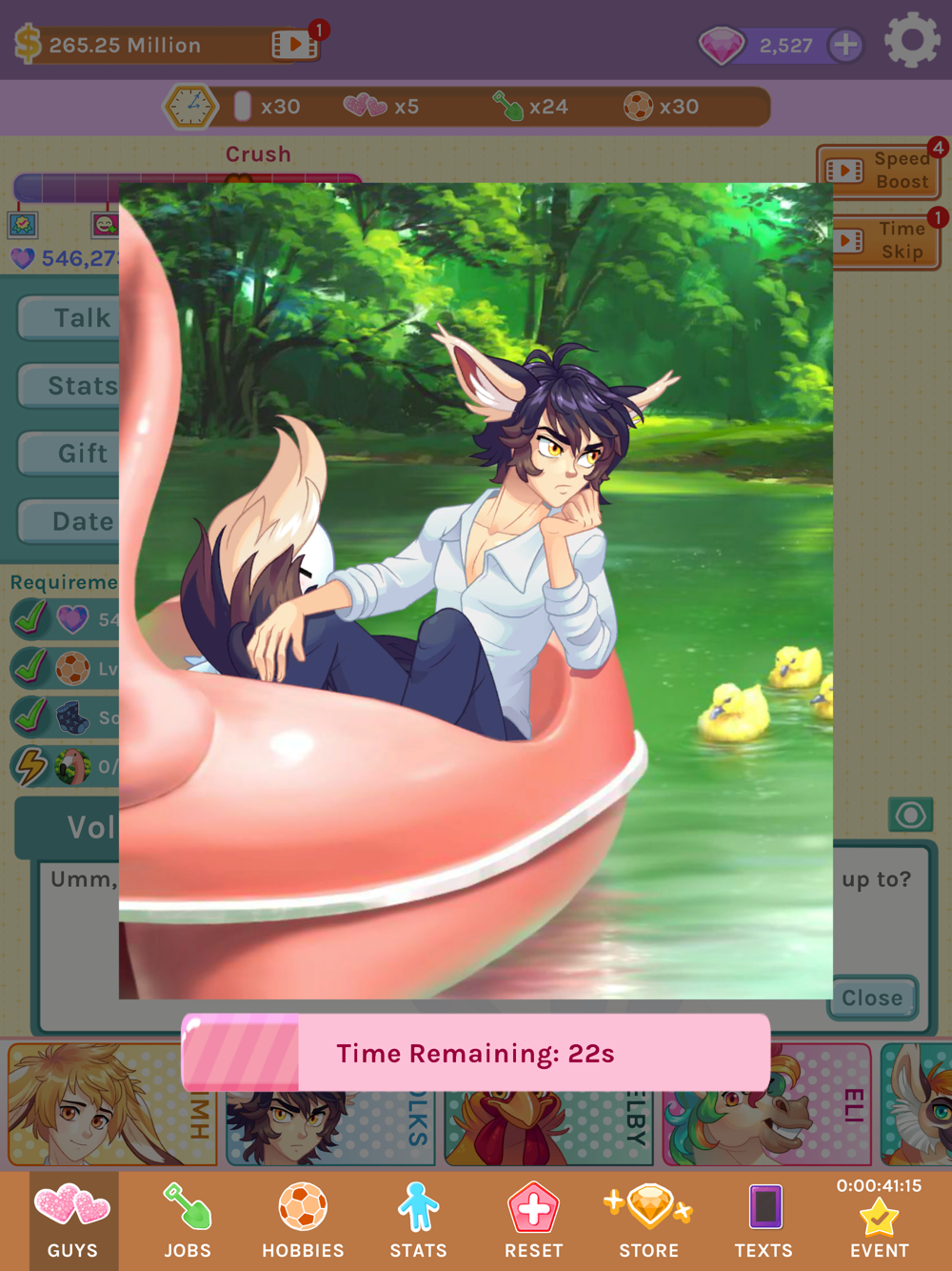 The gameplay is easy! The player must choose how they spend their time wisely, by working various jobs, earning stat points, and arranging dates and gifts for their love interests. A mix of strategy and story, the player will gradually become an accomplished dater, and have the chance to woo a TON of hawt guys with more planned for the future.