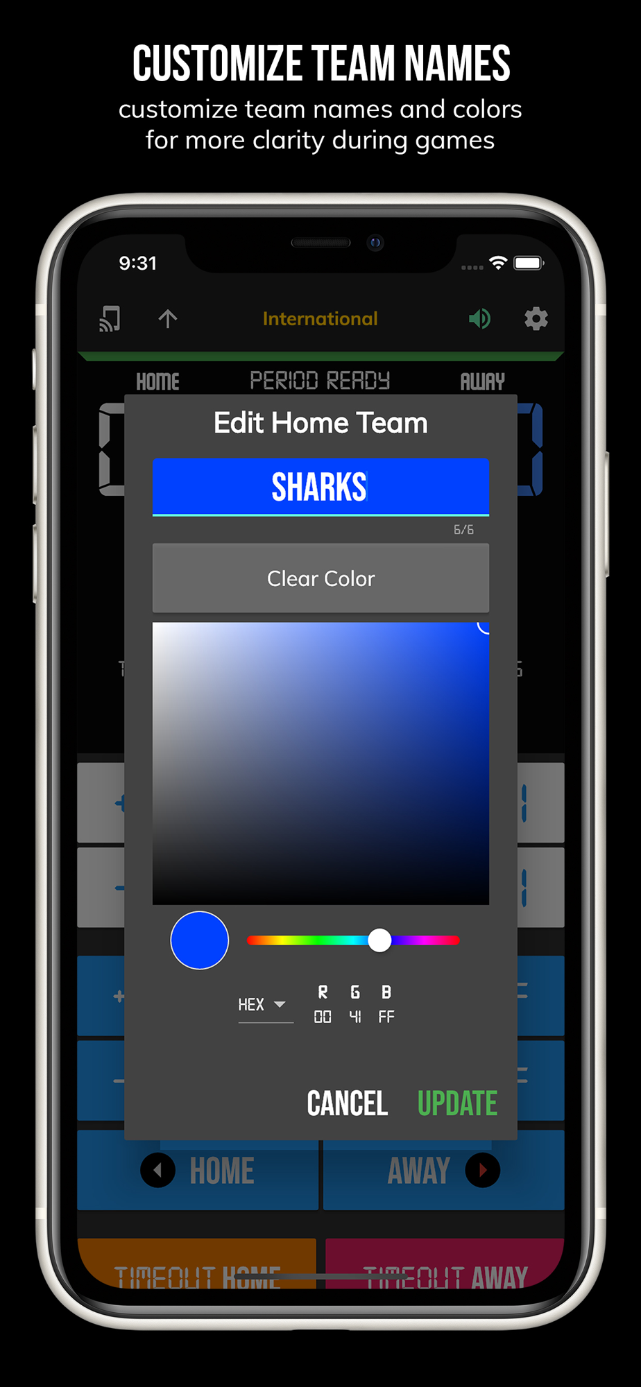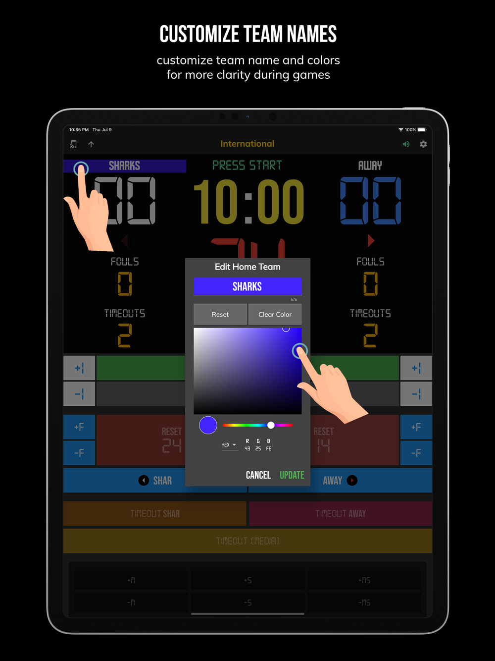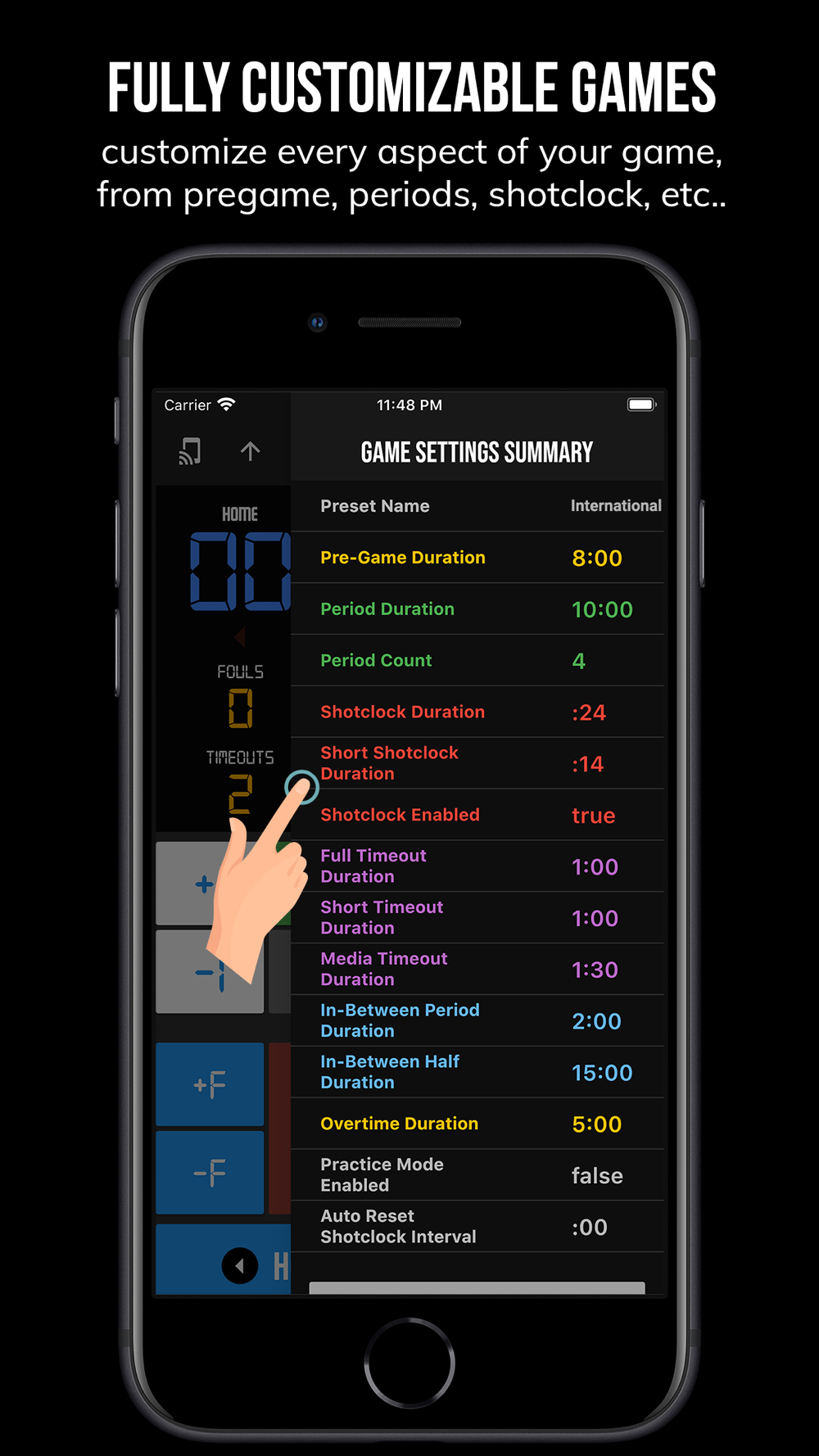 - Convenient timers: pregame timer, period timer, rest timer, timeout timer, overtime, etc.