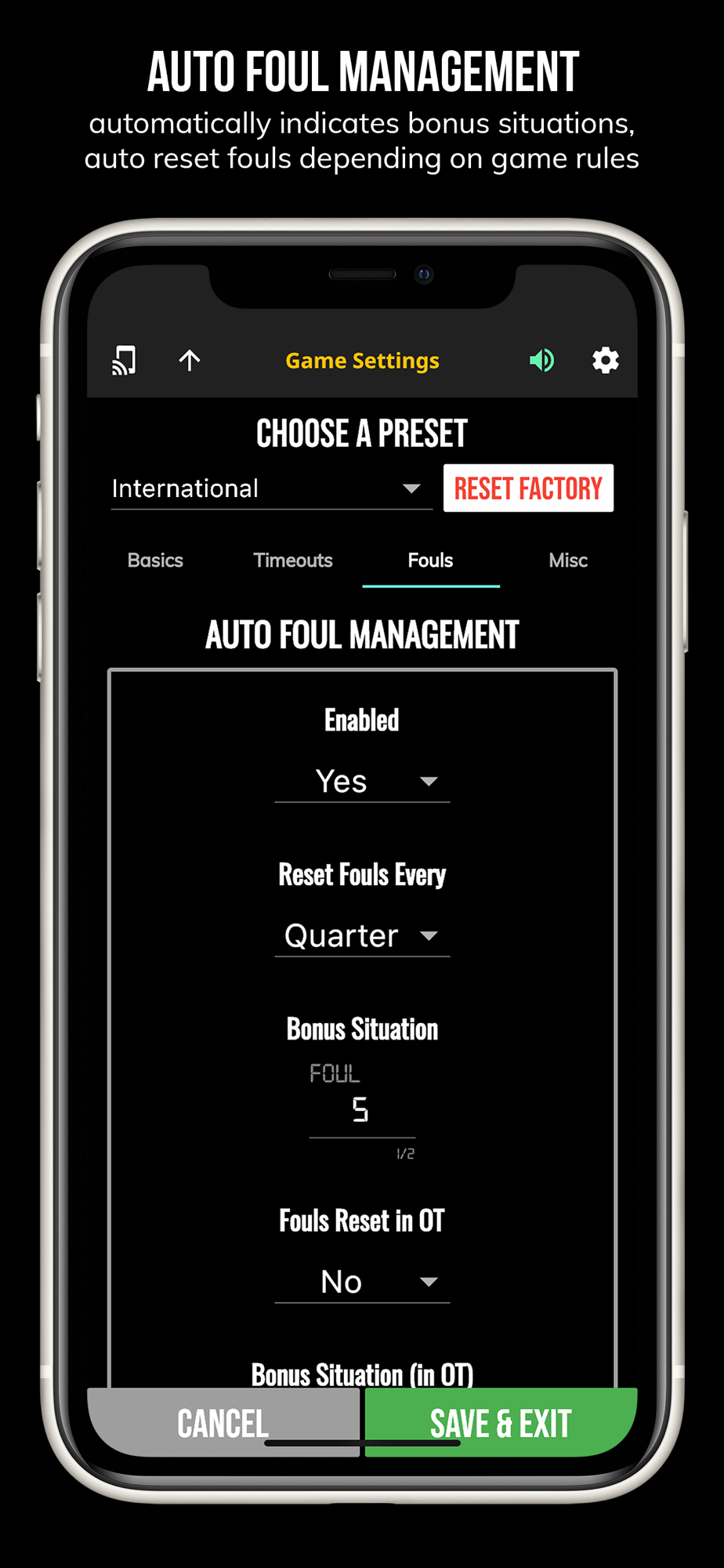 - Convenient Presets (International, 3x3, US Pro, College, High School, and more...)