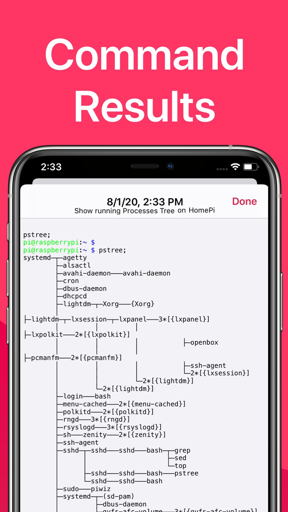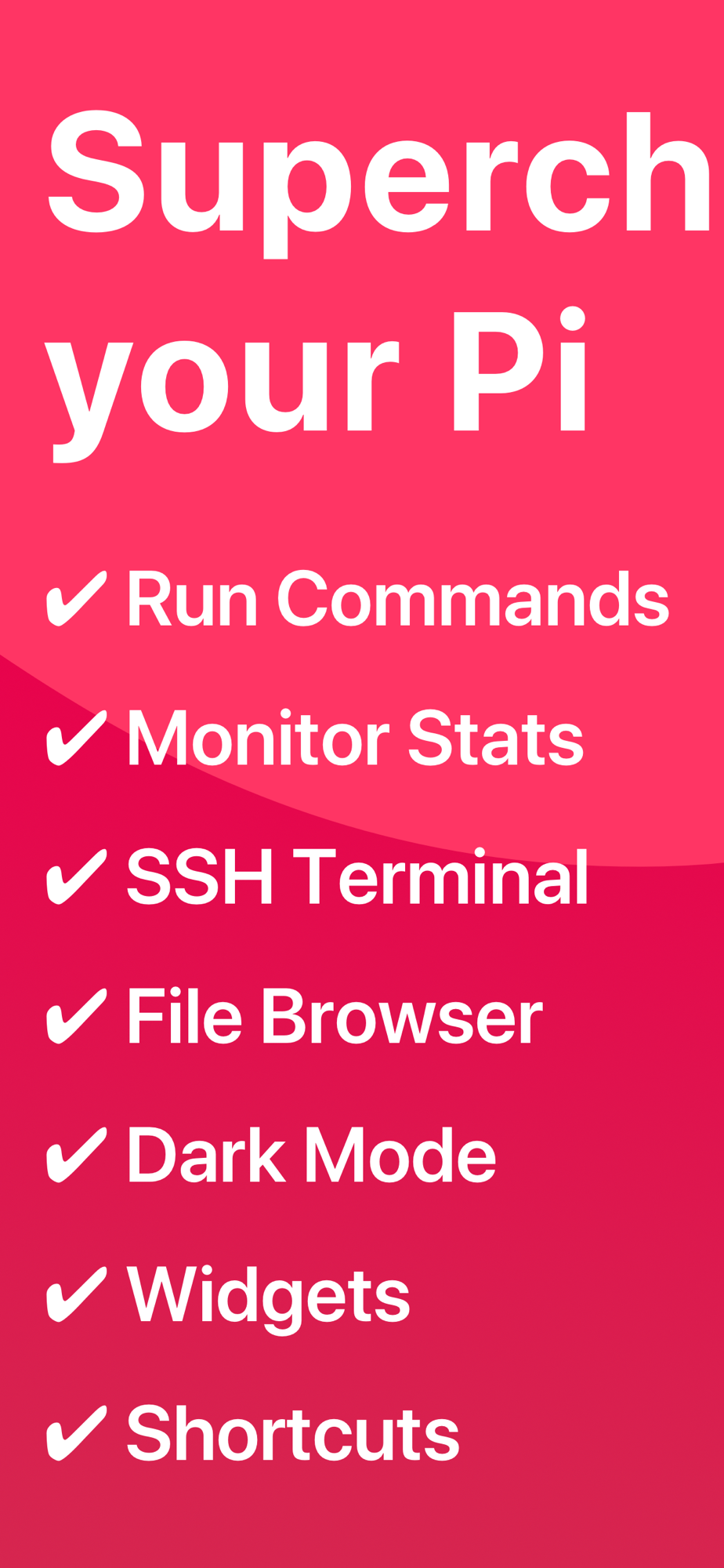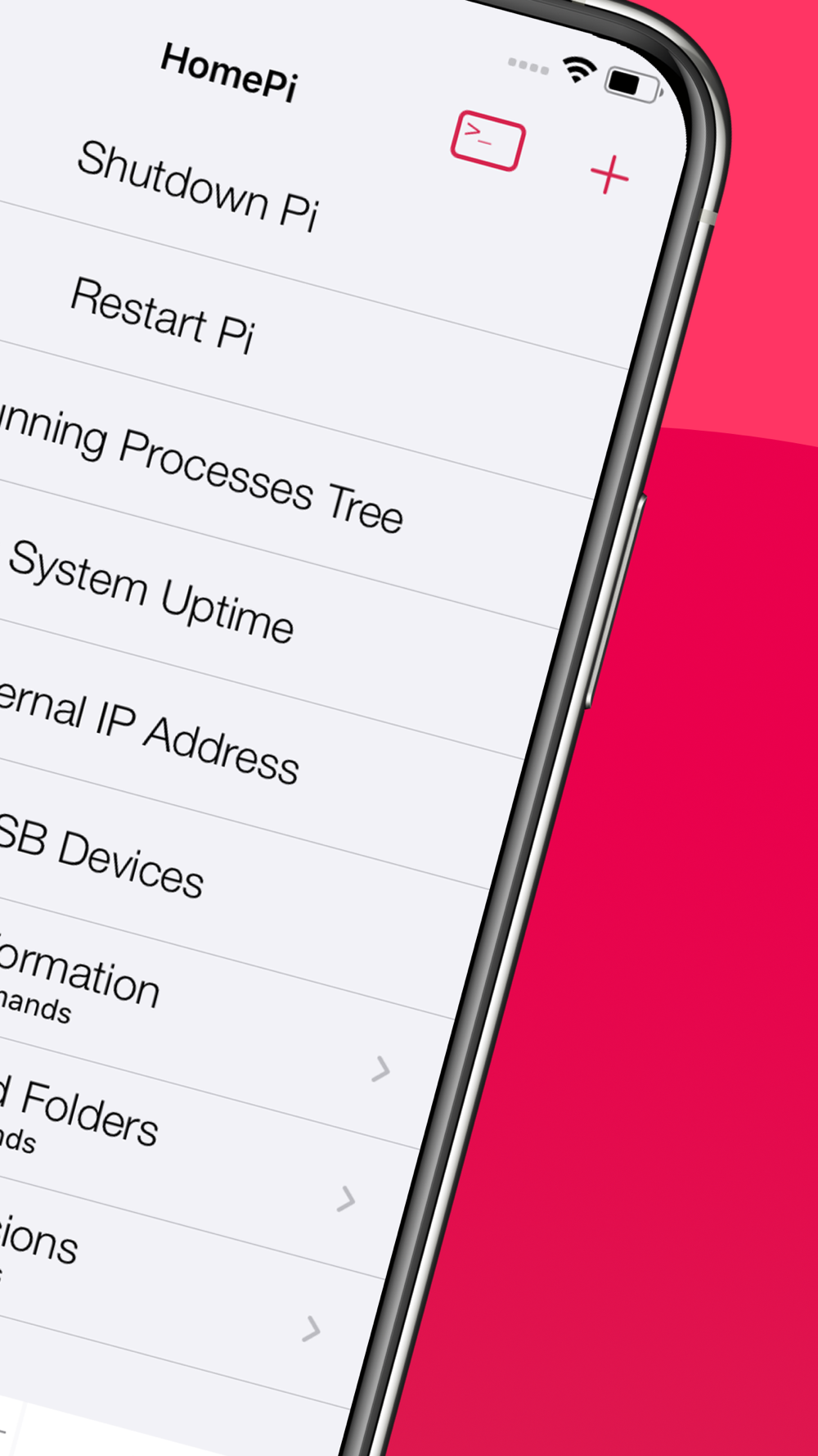 Run commands on your Pi with a single tap. Want to have your own commands? No problem. SimplePi lets you add as many commands as you wish.