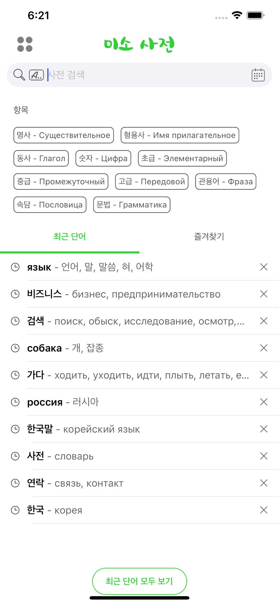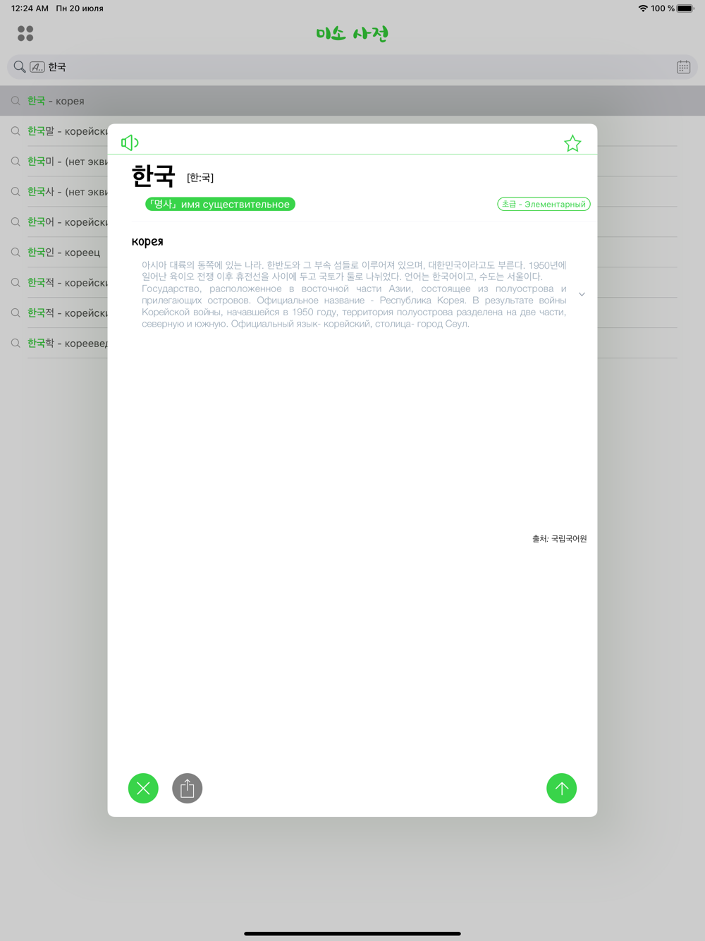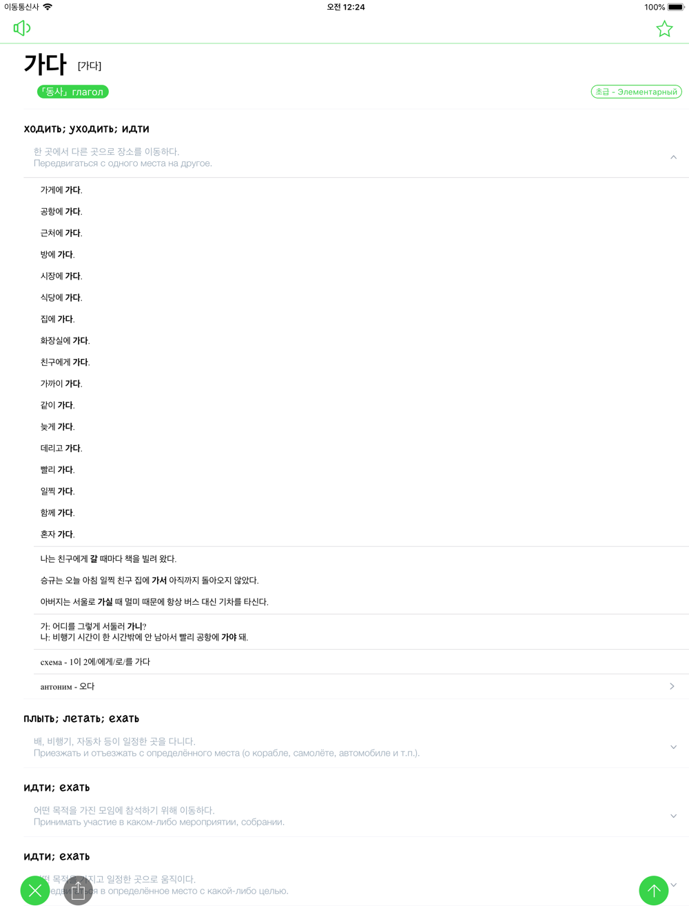 Korean-Russian-Korean dictionary app containing around 50 thousand words of beginner, intermediate, advanced levels.