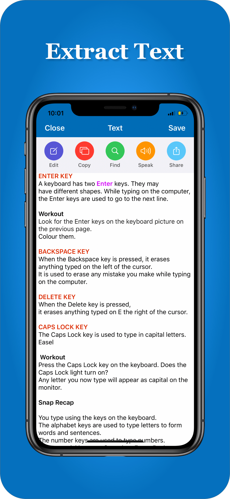Text Copier copies/scans text(supports handwritten and multilanguage texts) from paper or photos stored in devices and converts into editable text. It provides ability to edit, copy, share, search for a word and read out the scanned text. It also provides option to save the edited text in pdf or txt format.