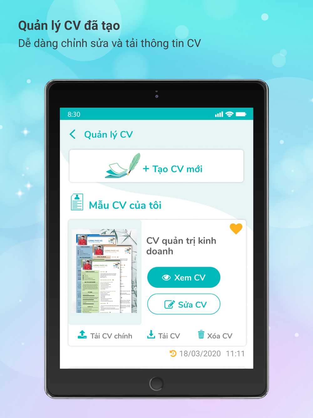 Tạo CV online hiện nay đã trở thành nhu cầu thiết yếu của phần đa các ứng viên đi xin việc hiện nay. Tuy nhiên không phải cũng có khả năng tự thiết kế được một mẫu CV đẹp hoặc ít nhất là khiến bản thân tự cảm thấy ưng ý. Bên cạnh đó nhiều phần mềm và website hỗ trợ hiện nay chỉ cho phép người dùng tạo CV trên máy tính, laptop. Điều này vô hình chung làm giảm tiện ích của người dùng khi phải phụ thuộc vào những chiếc máy tính cồng kềnh để có thể có được một bản CV.