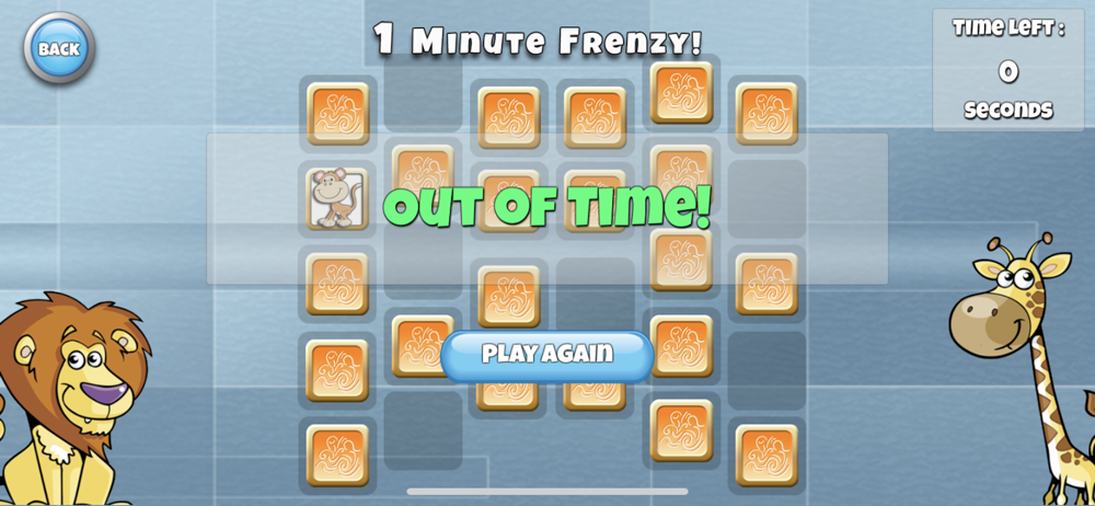 From the simple 12 tiles-free play (untimed) to the 28 tiles-1 minute Frenzy, there's something for everyone to test your memory.
