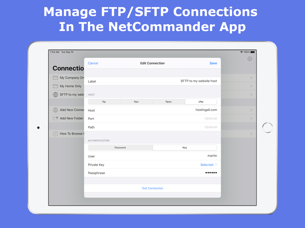 * the NetCommander app - allows you to manage FTP/SFTP connections - create, edit, delete and organize them in folders