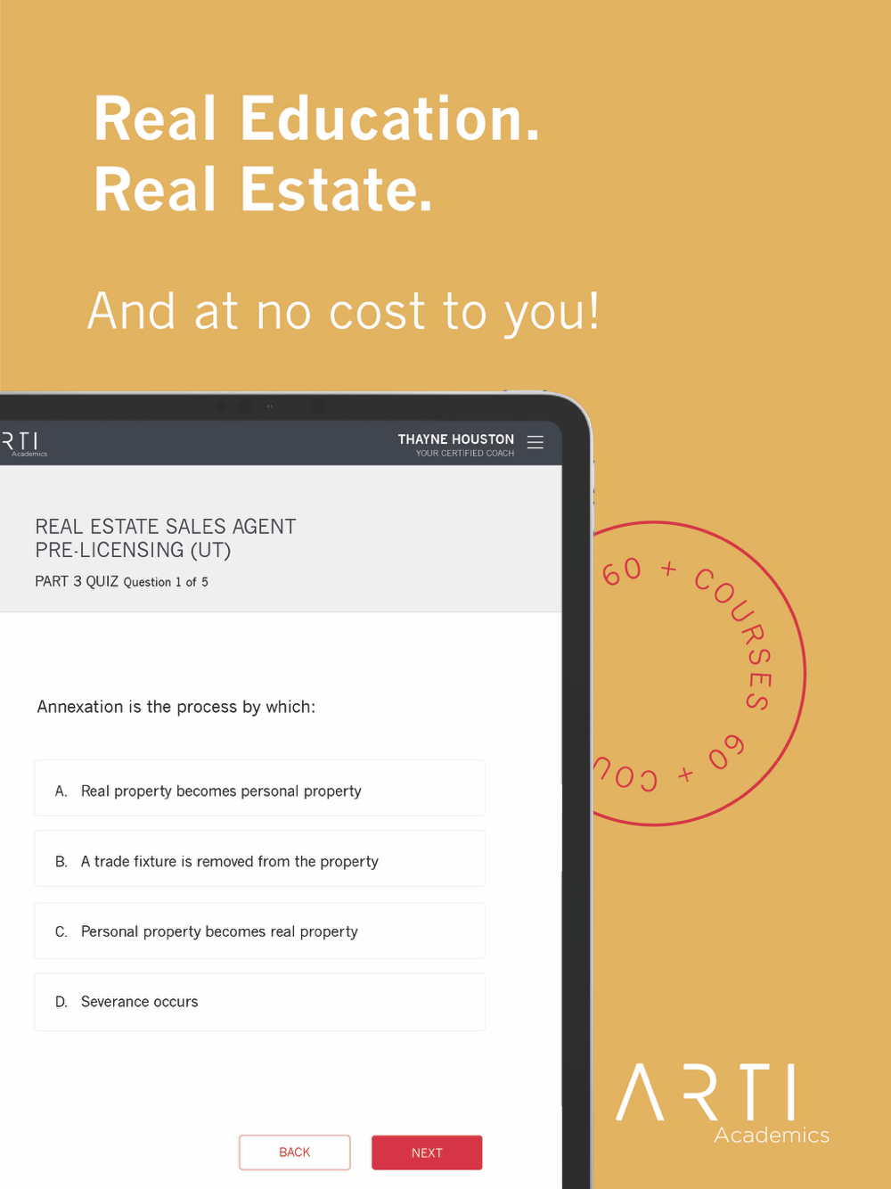 ARTI® Academics is a new model in education. We're focused on academic excellence and real world training for real estate professionals in Utah and Nevada. The way people buy and sell real estate is changing and it's our mission to help agents stay on the leading edge. We want lots of people to take our classes so we made it the best! Cool, right?