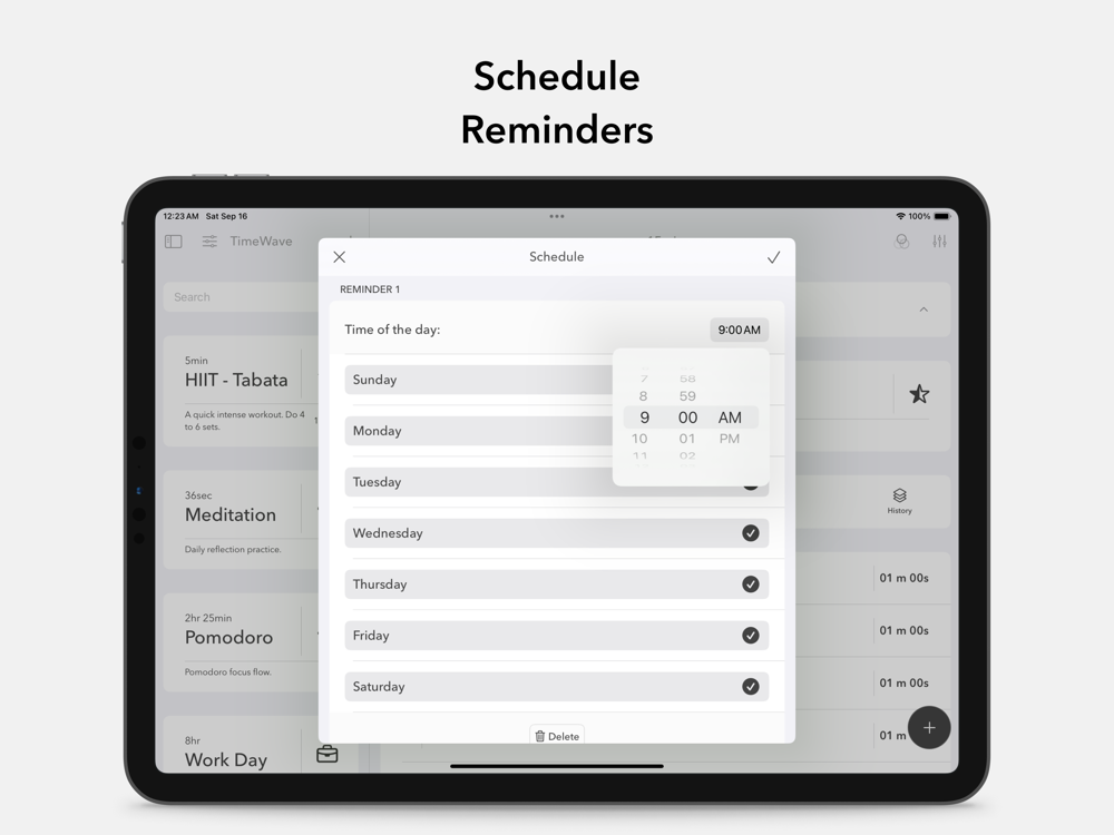 • Cooking — ever had to keep resetting your timers after each whistle? well, now you wont have to. Just create a timewave for each recipe.