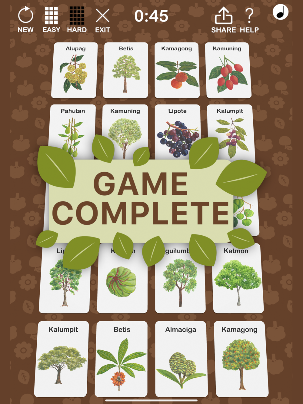 Test and improve your memory while learning about indigenous Philippine trees in this fun, beautiful, and educational game – proudly Philippine-made!