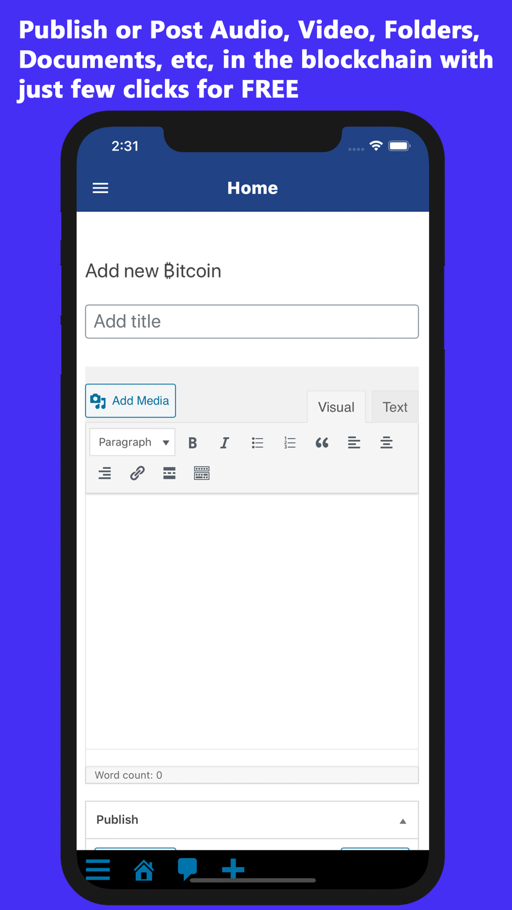 *Create cloud based immutable Paper Trails or Proof of Work for your contents with Blockchain Editor™.
