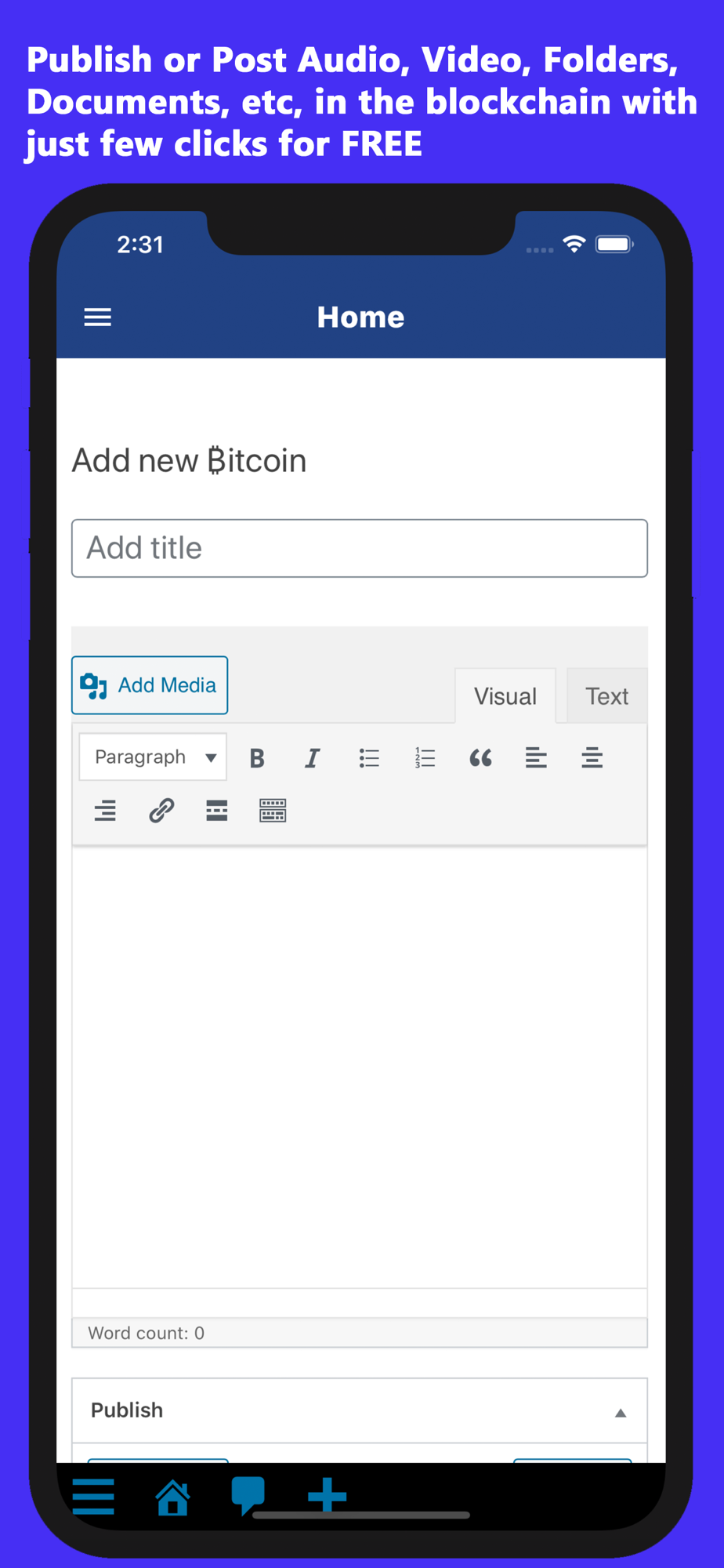 Use our powerful Blockchain Editor™ to create/upload your Content or Smart Contract for the Blockchain.