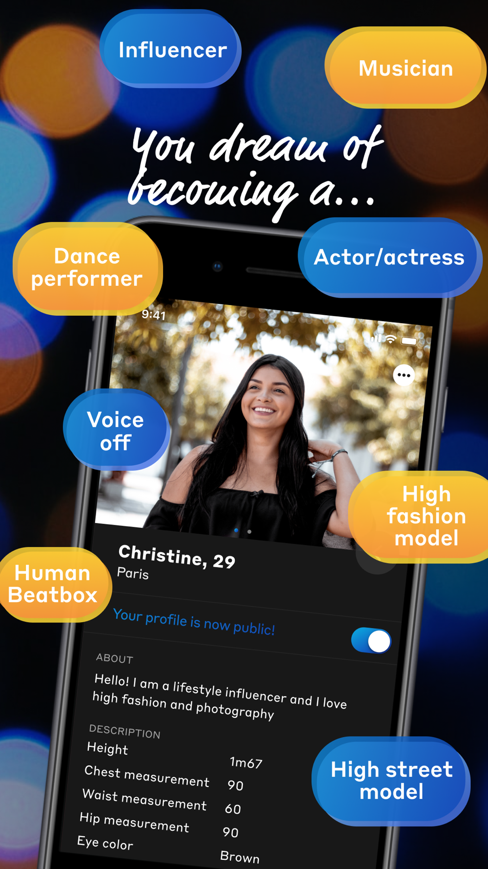 Backstage allows you to be visible and to be contacted by modeling agencies, advertisers, televisions, radio (yes backstage also allows voice casting;), artistic agents, choreographers, producers, cinema, music, theater, show ...