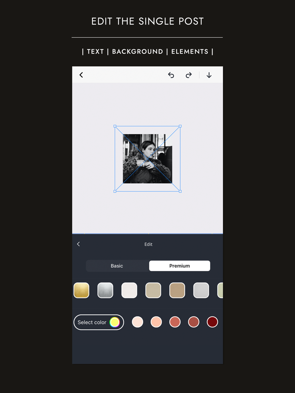 - save all 12 created posts directly to the camera roll on your device to use on a different platform