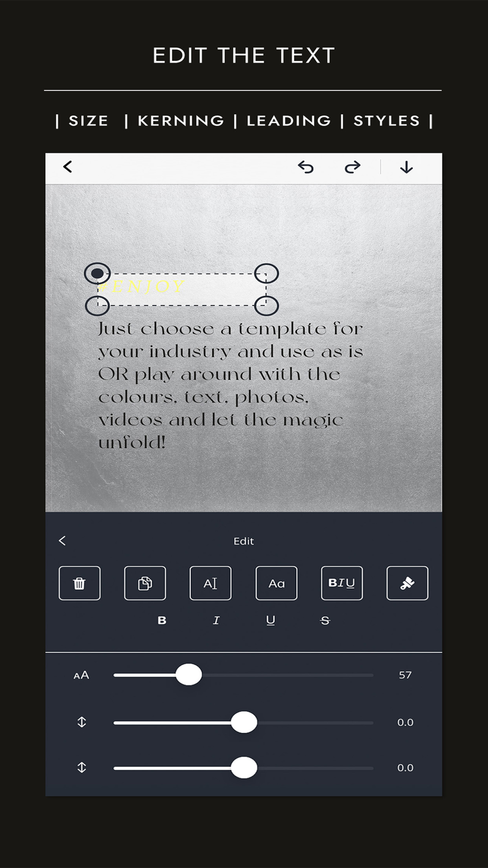 Just choose a template for your industry and use it as is OR play around with the colours, text, photos, videos and let the magic unfold!