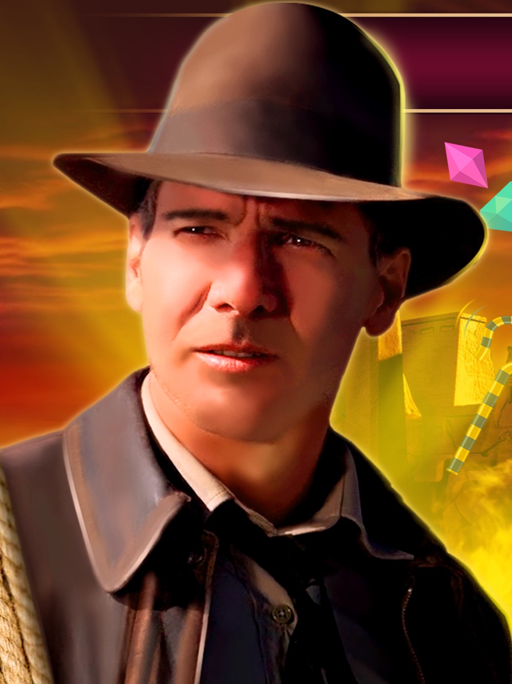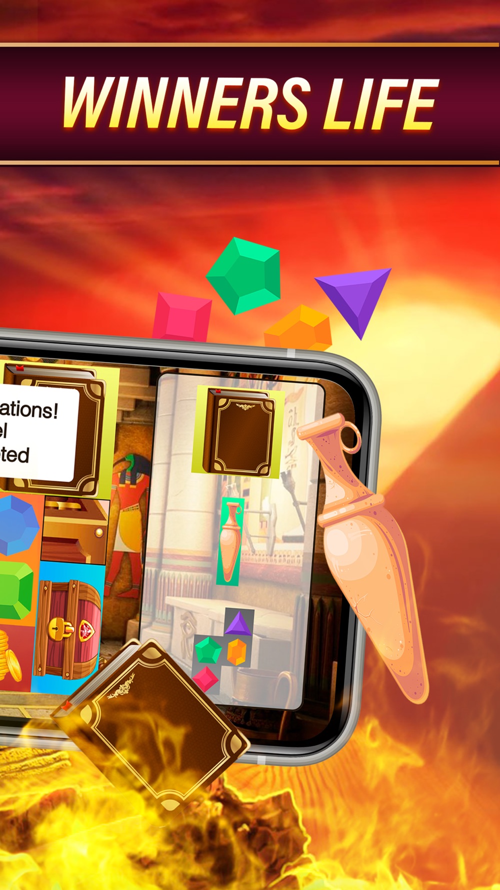 You need to stack the treasures so that there are as few empty cells as possible. You can turn over already folded parts. When the field is filled at least 80%, the player enters another tomb.