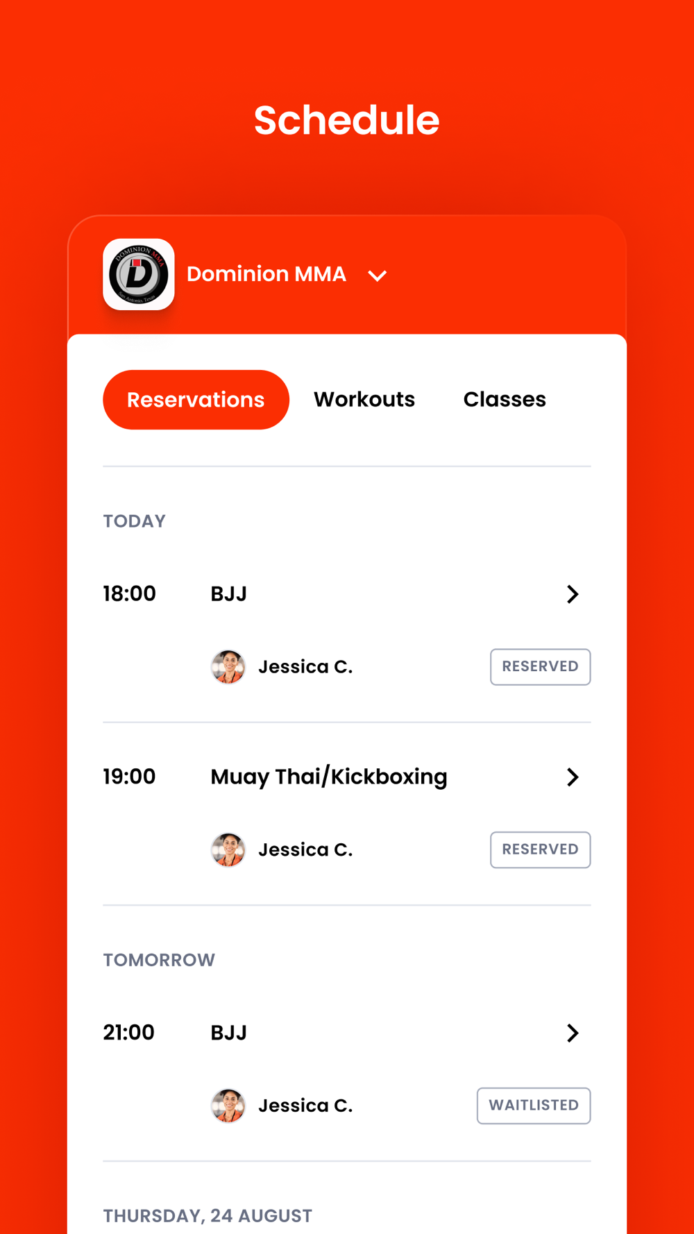For members of Dominion MMA to reserve their place in a class, sign up for gym events, and general account management like updating headshots and credit card on file.