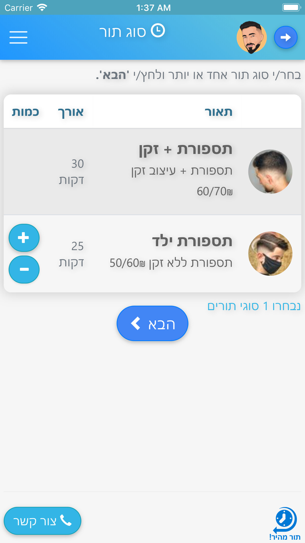 באפליקציה אפשר לקבוע תור, לנווט באמצעות Waze ולפנות אליי באמצעות WhatsApp.