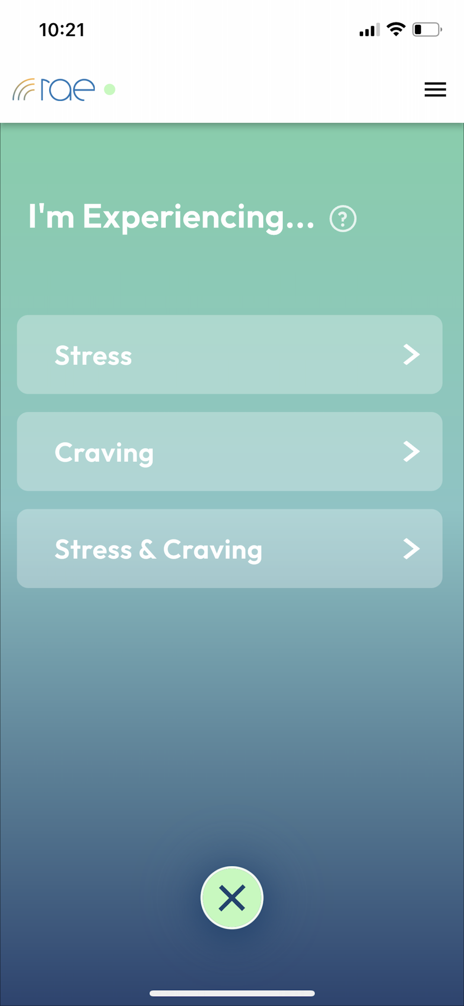 RAE (Realize, Analyze, Engage) Health combines wearable technology and patented biomarker identification of Stress and Craving, allowing mobile app users the ability to identify, detect, and track patterns of Cravings and Stress. In conjunction with a compatible wearable sensor device, RAE Health collects, analyzes and delivers real time data and trend reports to enrolled participants, their healthcare providers and caregivers, augmenting the continuum of care.