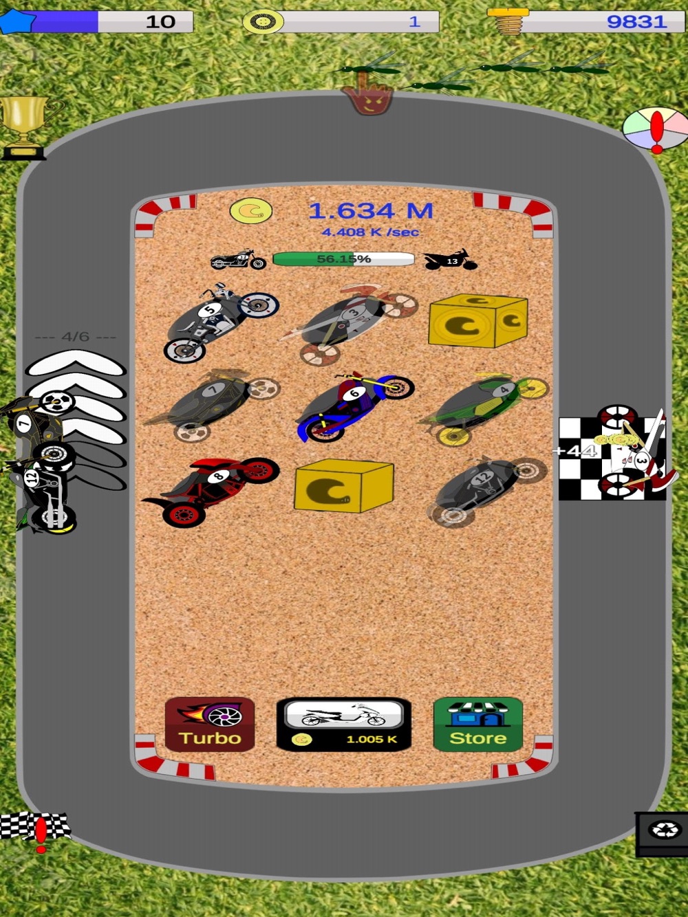 游戏的特点:组合摩托车以解锁更多的东西,并运行它们来赚钱以购买新的摩托车。发现,解锁,收集,运行,冲刺,合并和合并。首先; “合并”不会停止。