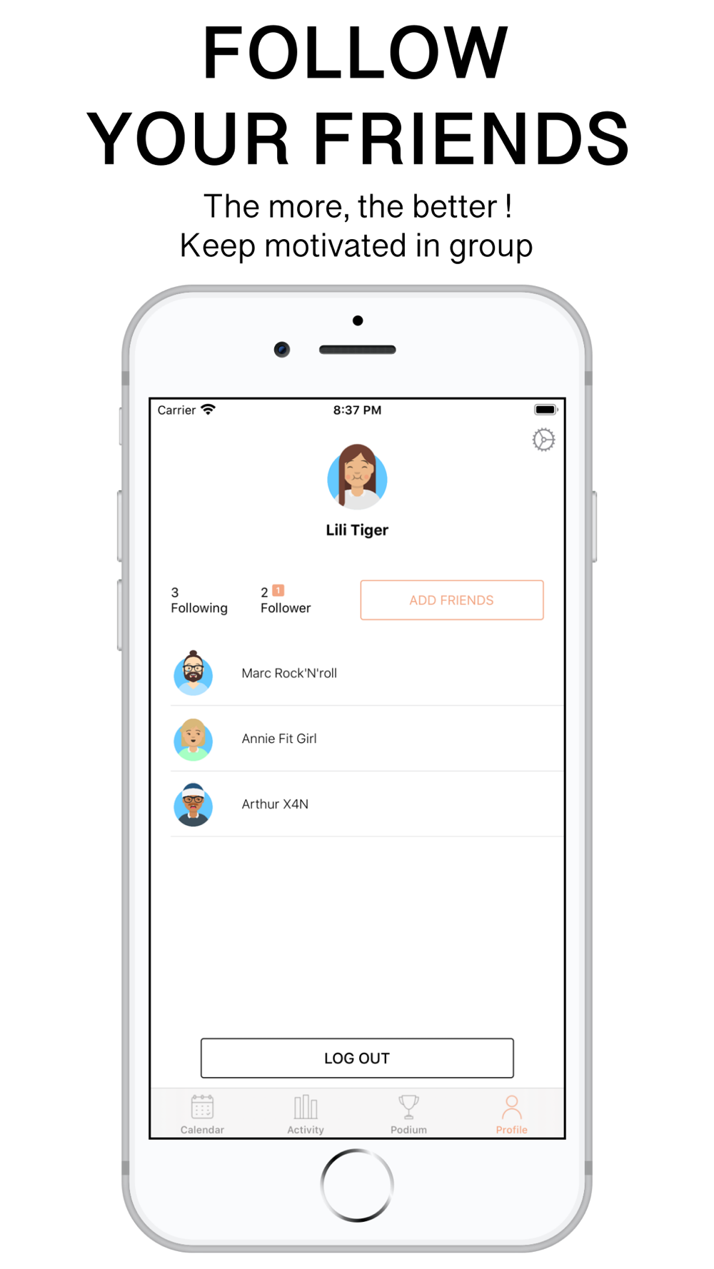 * FOLLOW YOUR FRIENDS: Stay focused and motivated by following your friends' evolution.