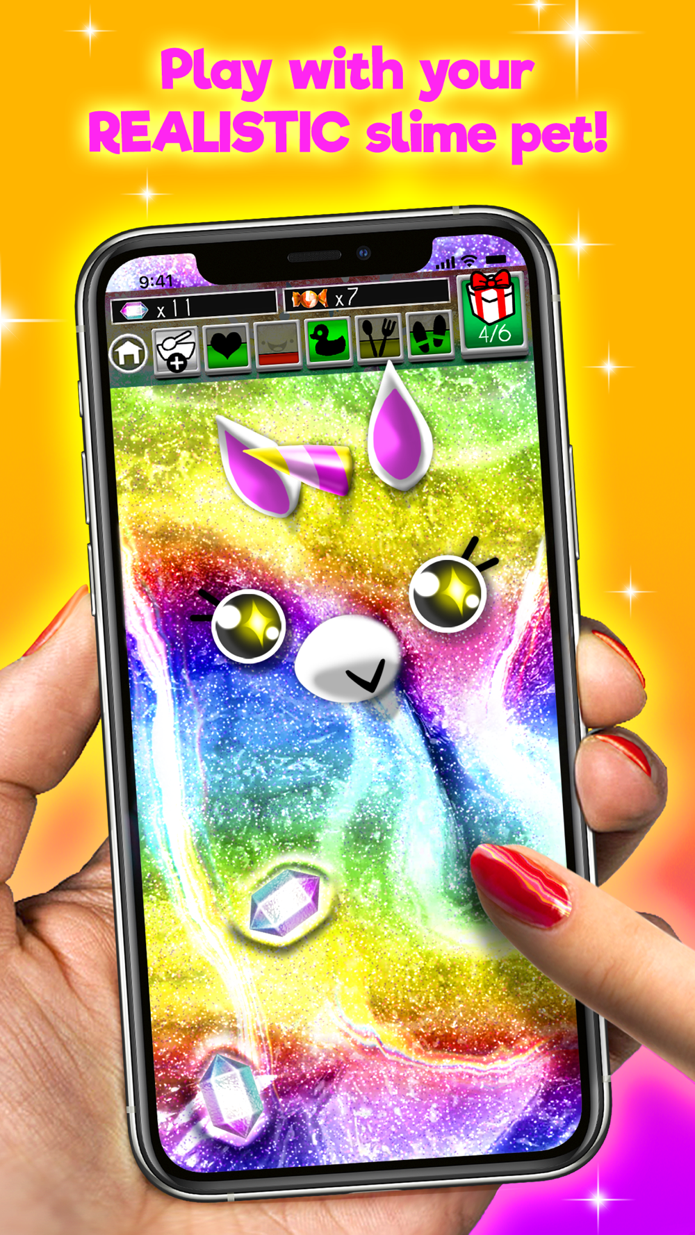 • Customize your slime texture. Lots of diferent feels: Squishy, fluffy, gooey, liquid...