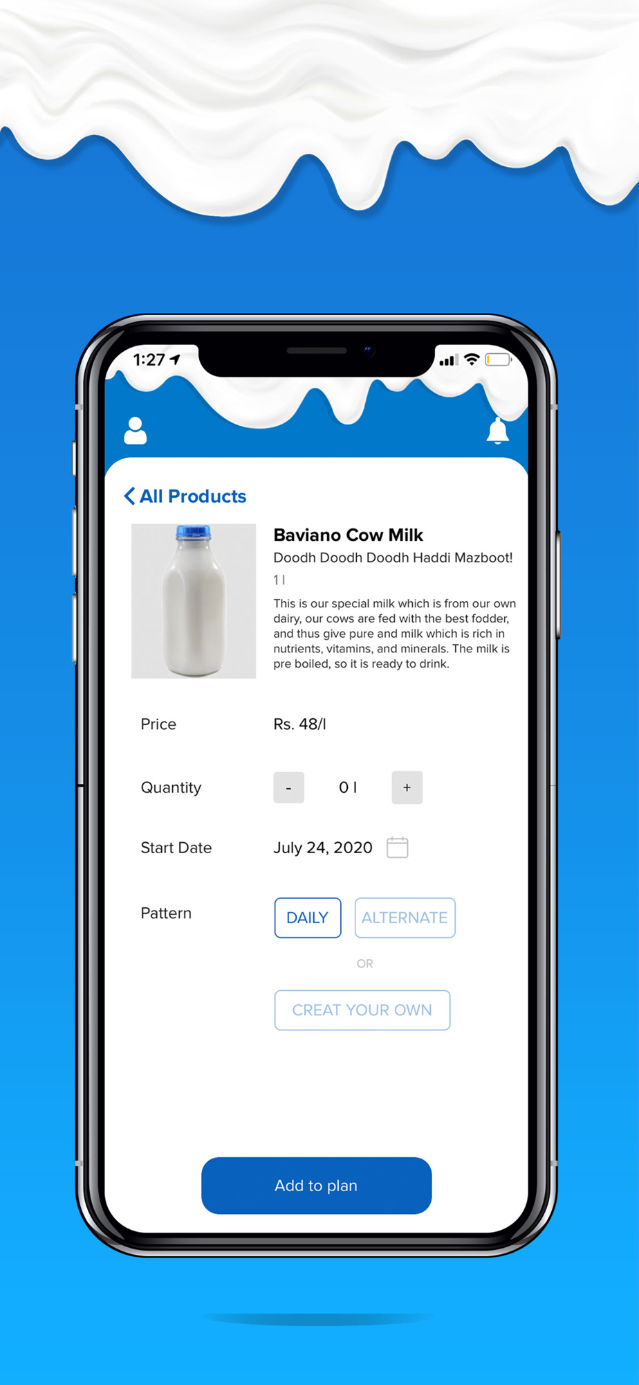 Baviano Milk & More is a milk subscription app that delivers fresh cow & buffalo milk and other dairy products right at your doorstep.