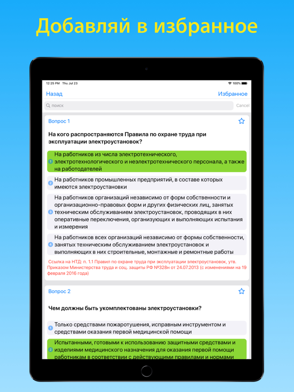 Данный сборник тестов полностью соответствуют сборнику Ростехнадзора. Приложение позволяет пройти тестирование по актуальным на данный момент категориям.