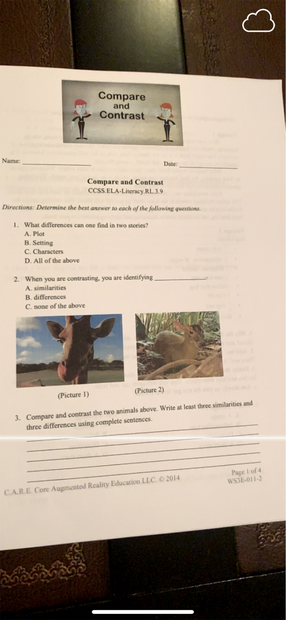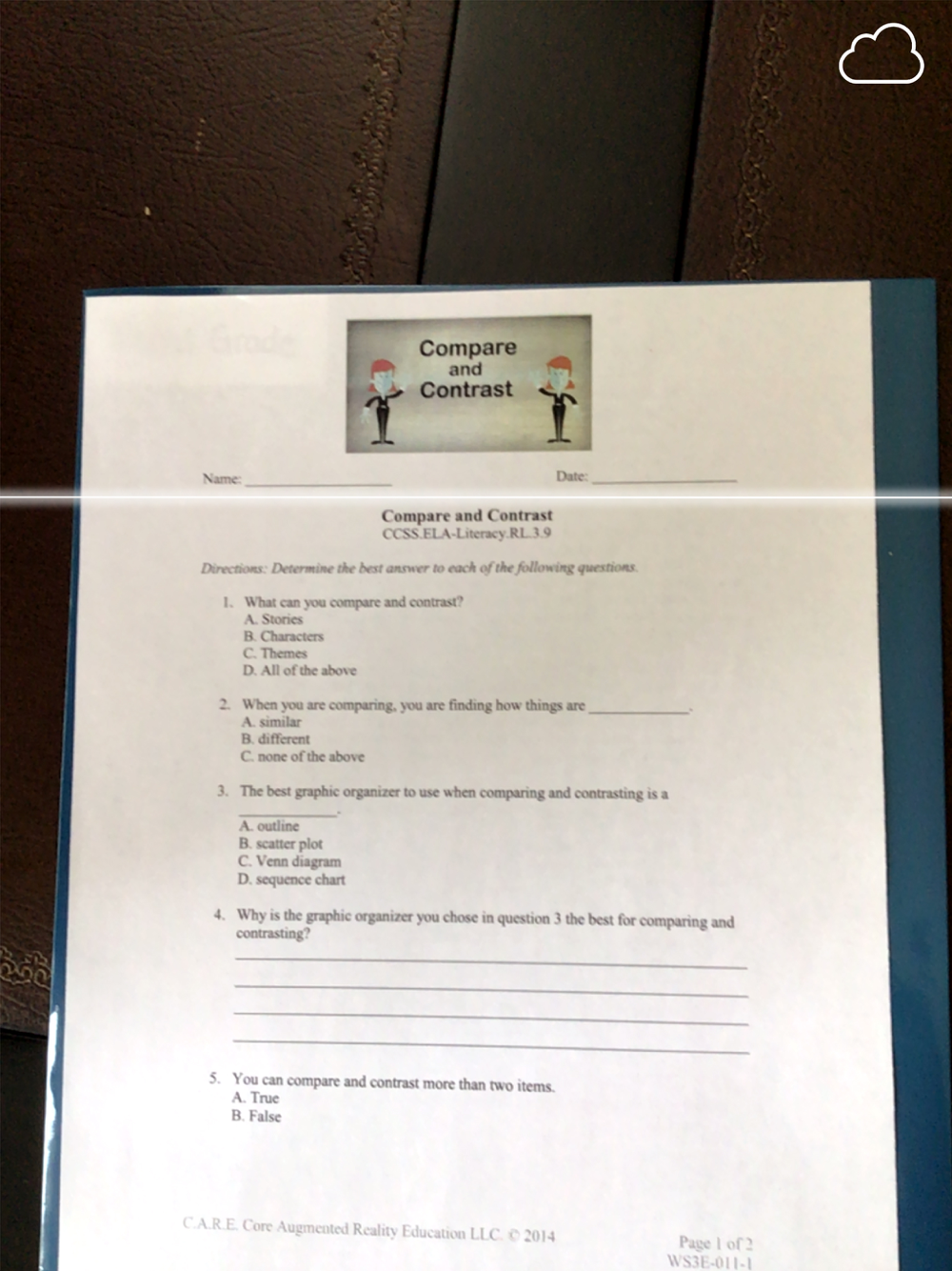 CARE4D is a mobile application that utilizes augmented reality to scan markers present on the CARE4D worksheets, and view instructional lessons. The instructional videos serve to reinforce concepts and academic vocabulary being taught in each topic. The CARE4D Curriculum is built for students in Grades K - 8, and consists of an entire year’s worth of learning materials in two subjects - English and Mathematics. All of the materials are developed utilizing the US Common Core State Standards. Content library includes multiple assignments per topic, formative assessments, cumulative assessments and answer keys - ~2500 in total.