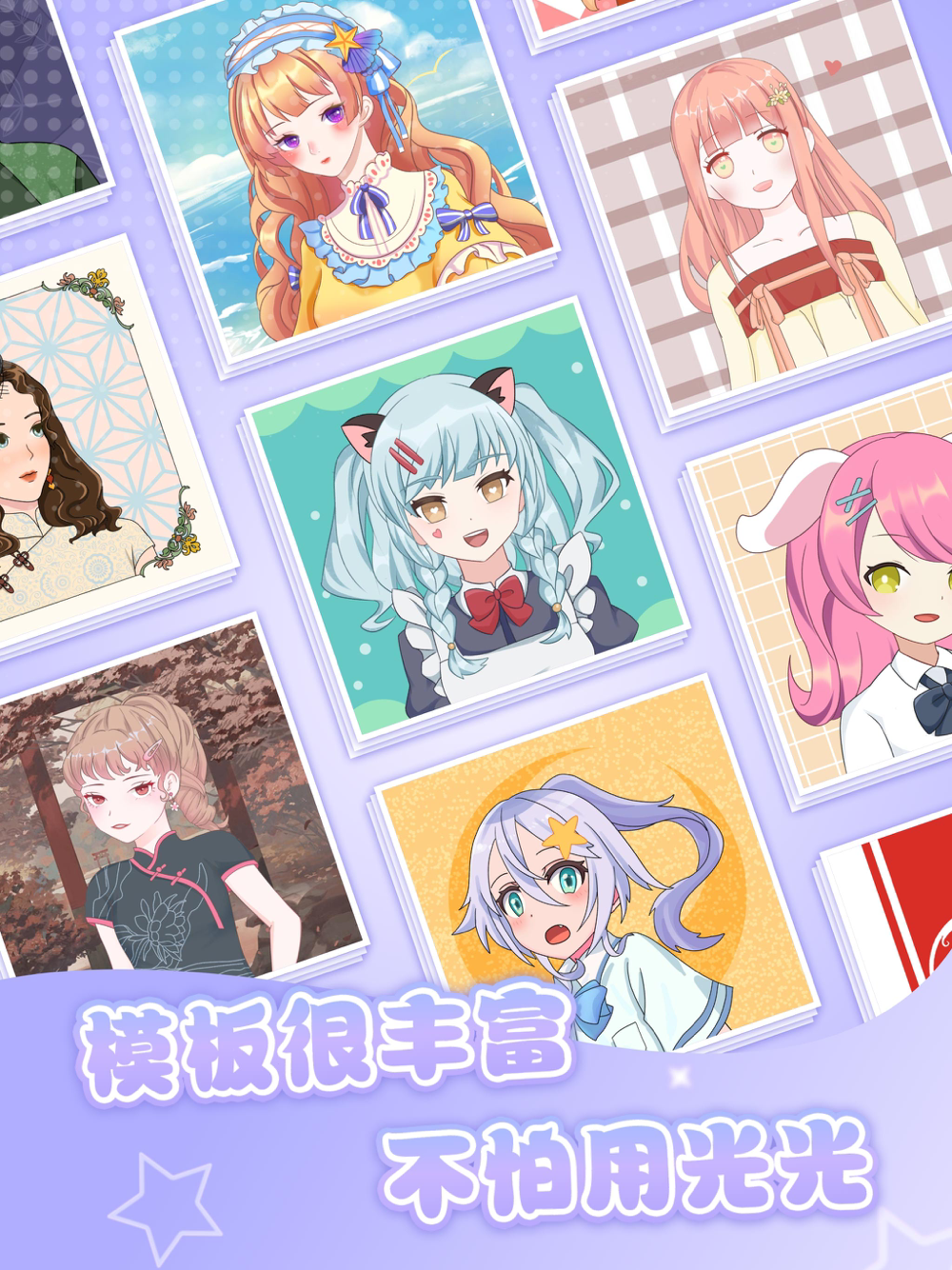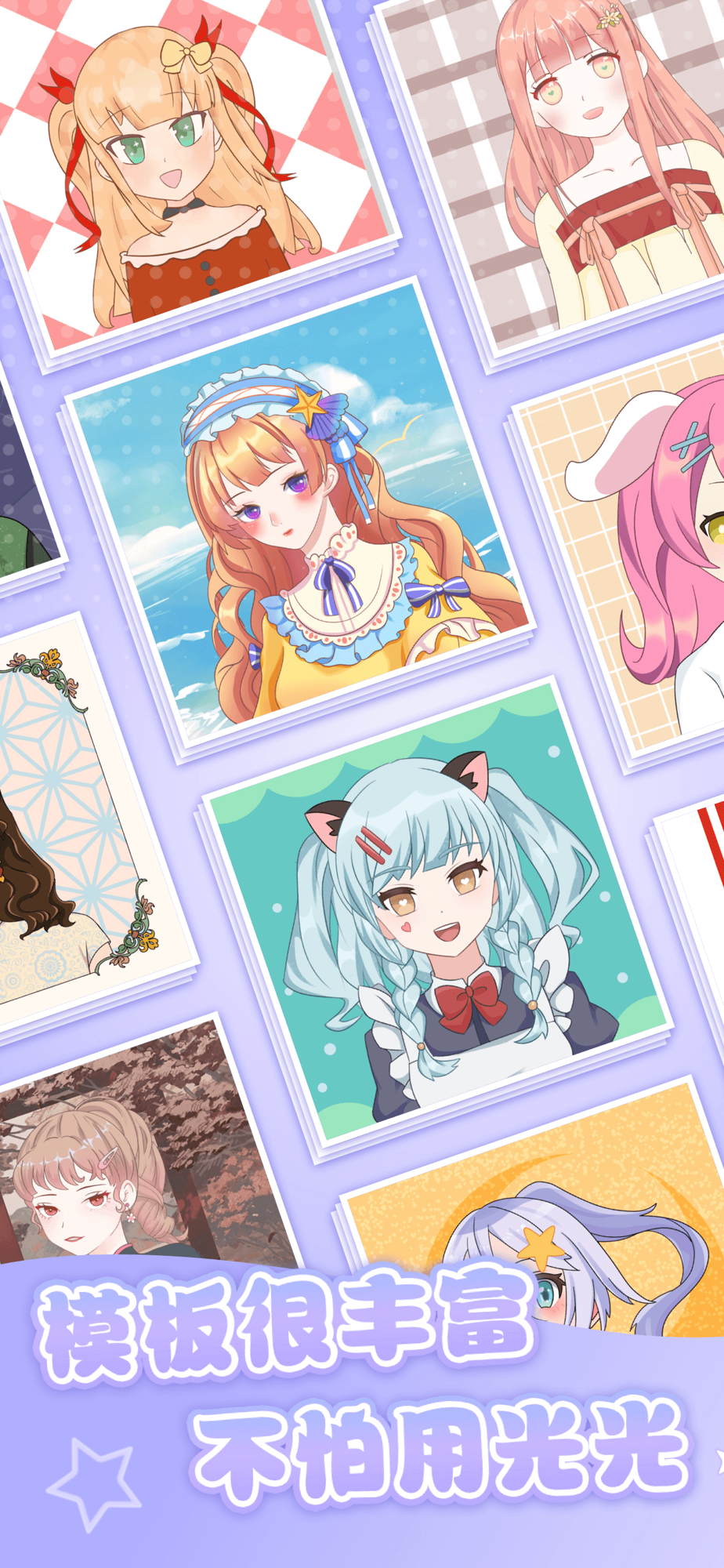 多种贴纸元素自由拼搭,即使不会画画,也可以轻松拼出专属于您的二次元形象。