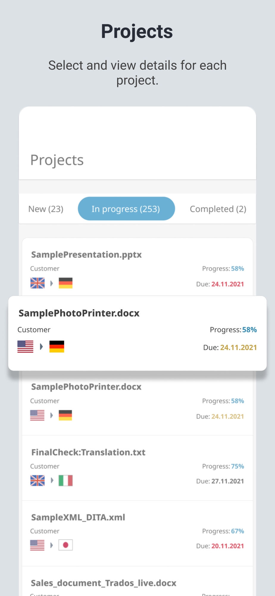 The Trados app is the perfect companion for the busy translation professional who needs to keep on top of their projects.
