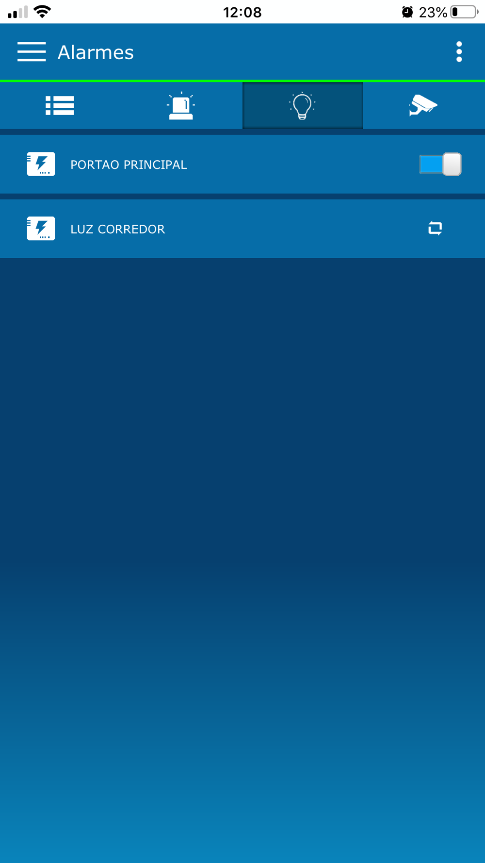 Aplicativo desenvolvido para interação com monitoramento de alarme e câmeras