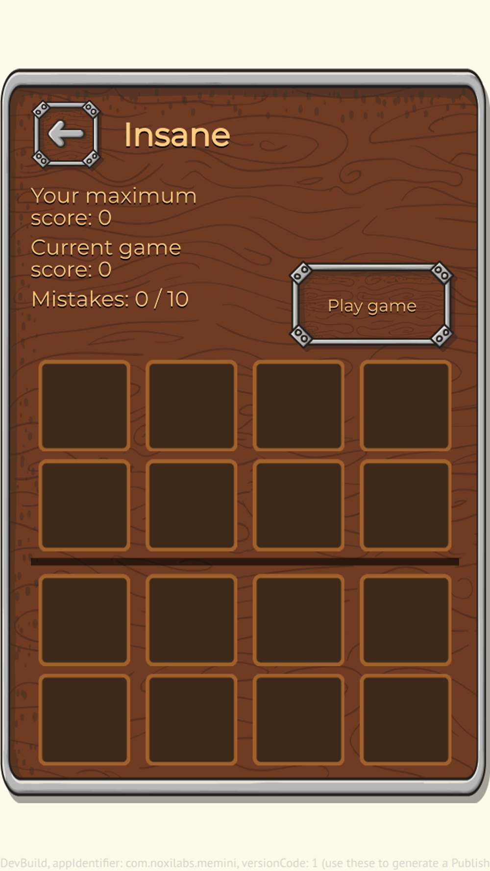 There are 4 different levels of difficulty: Easy, Medium, Hard and Insane.