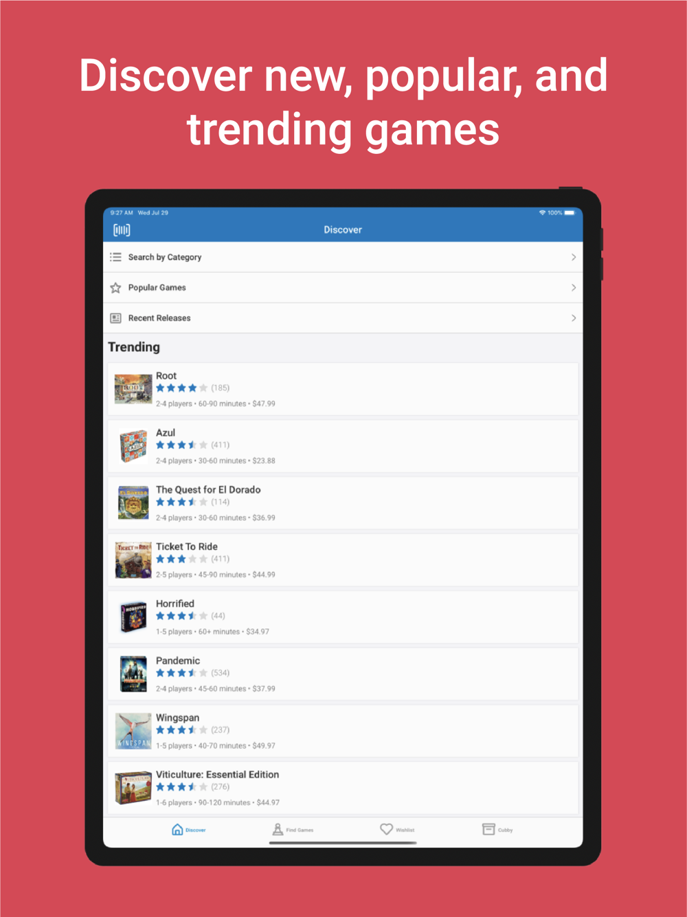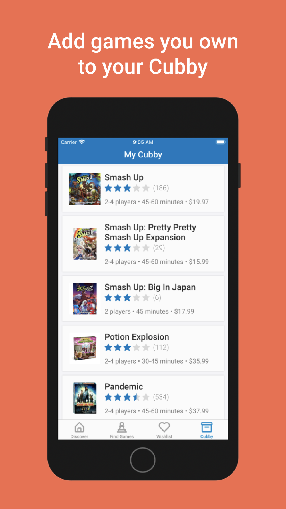 Add the games that you own to your Cubby. Add games that you're interested in to your Wishlist. Keep track of it all!