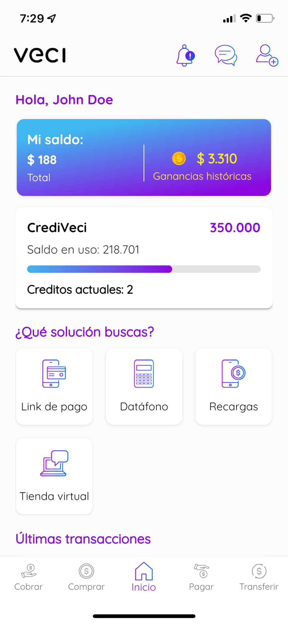 Veci es la app GRATUITA que te sirve para hacer crecer tu negocio, con tienda virtual, datafono, link de pago, crédito, transferencias y lo mejor, comisiones por ventas de recargas, pines, pago de facturas y mucho más ¡Descárgala ya!