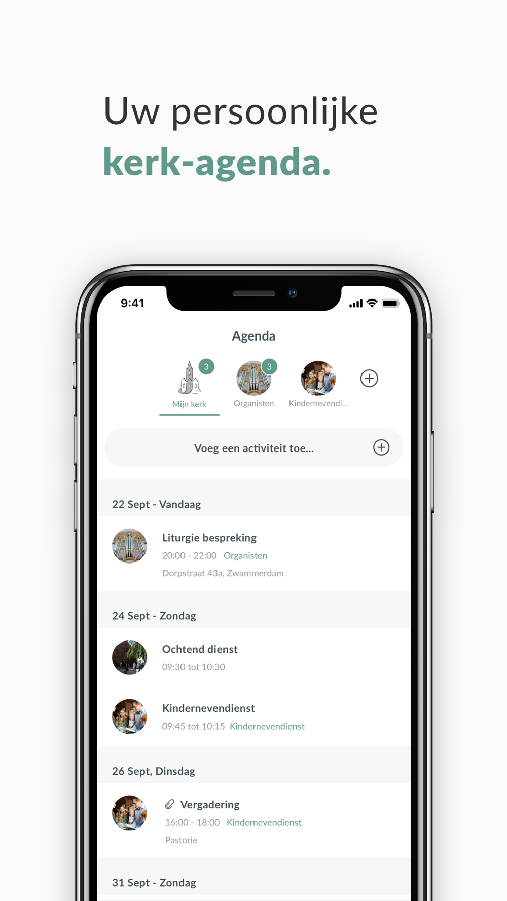 Dankzij onze unieke groepenstructuur helpen wij kerken beter te communiceren. Met de hele gemeenschap, maar ook onderling. U kunt zelf groepen toevoegen en mensen daarvoor uitnodigen. Een slimme timeline zorgt er voor dat iedere gebruiker persoonlijke en relevante informatie ziet.