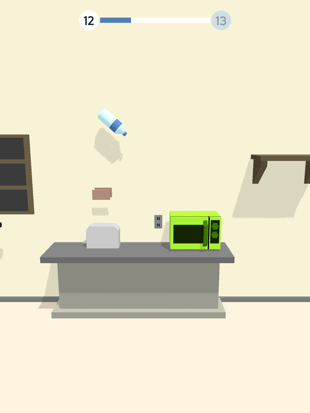 在不同房间内跳过所有的物品:架子,桌子,椅子,沙发,甚至音响!发挥你的灵活性,发展协调性,控制瓶子跳跃的距离吧!悄悄告诉你,正确计算瓶子跳跃的距离是你获胜的关键哦!