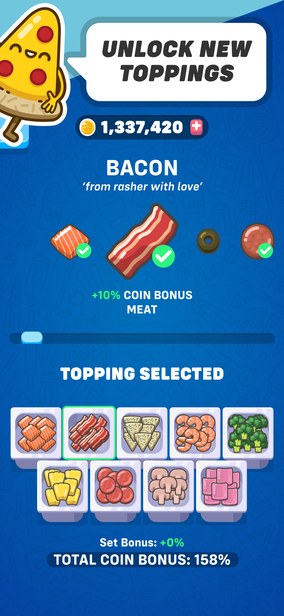 • Dozens of unique unlockable toppings - from squeezy-cheese to caviar. Unlock them all!