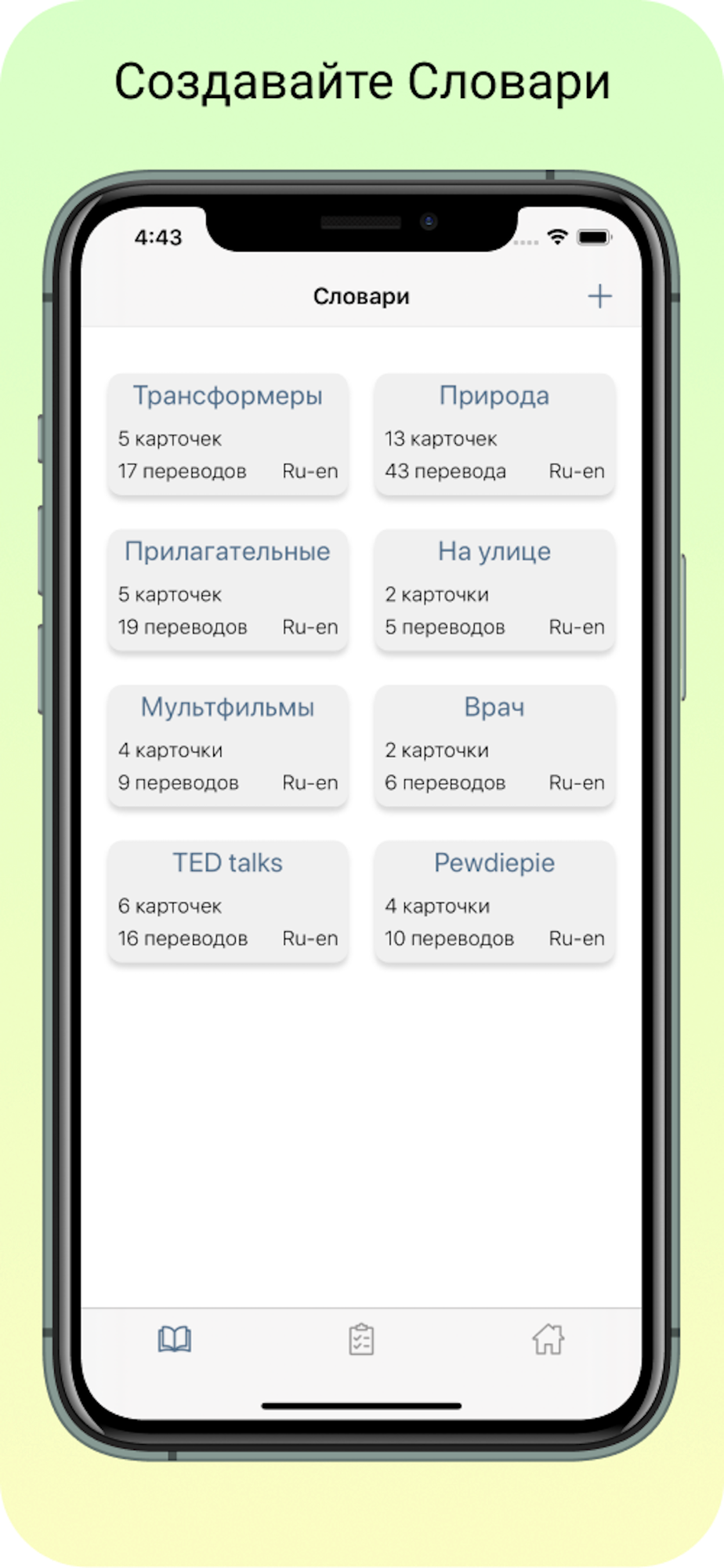 — Наполняйте их Переводами: с транскрипцией, комментарием и примером использования