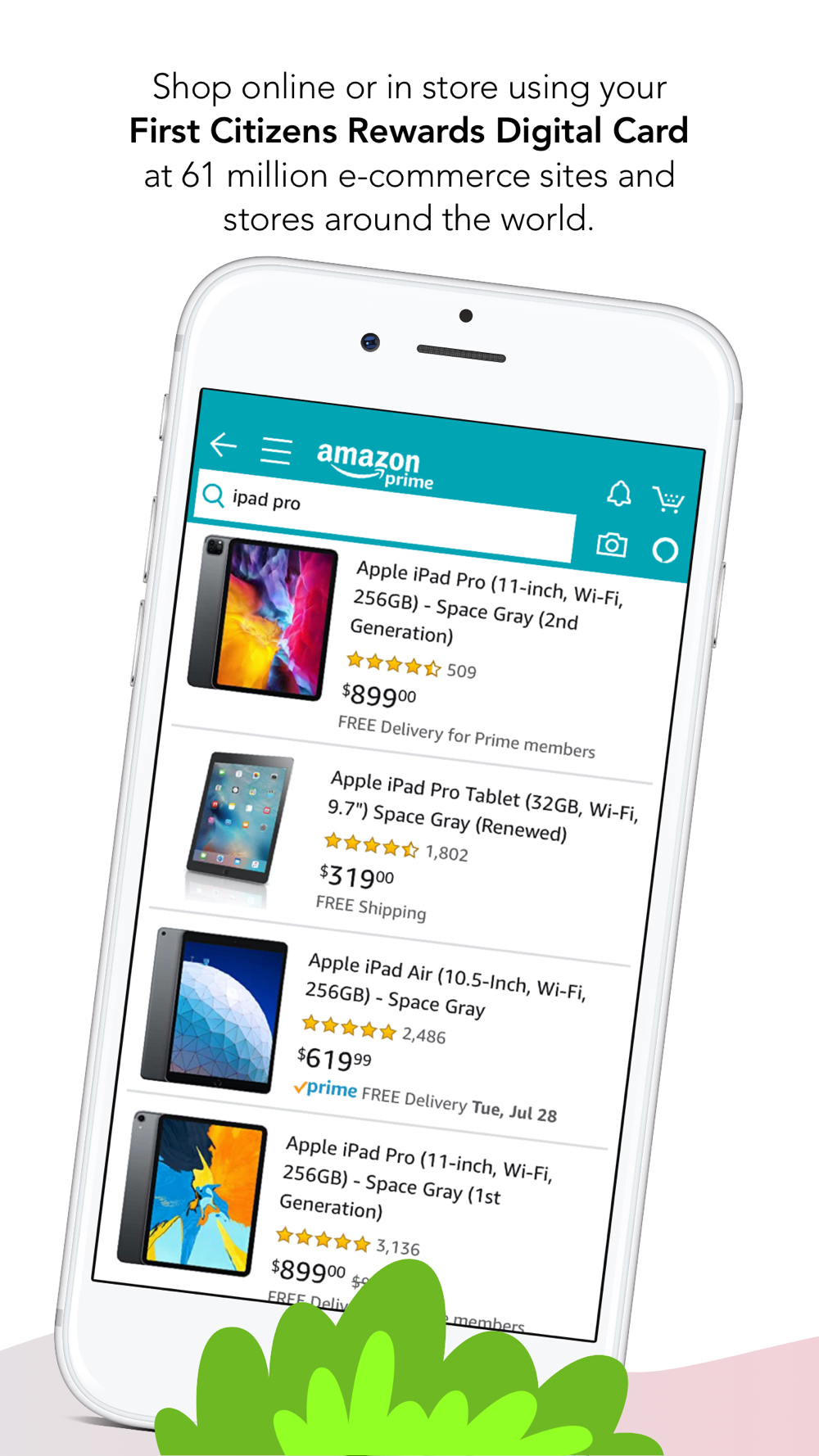 * Shop online or in-store using your First Citizens Rewards Digital Card at 46+ million e-commerce sites and stores around the world