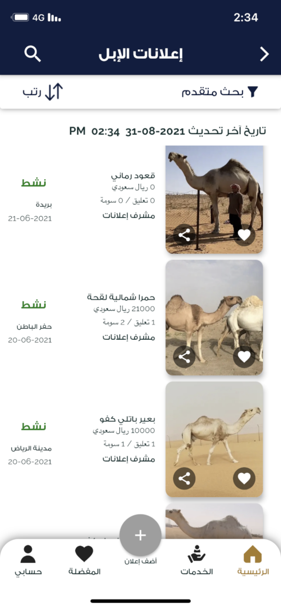 جميع أسواق الإبل والأغنام في جوالك بمزادات مباشرة بينك وبين صاحب الحلال كأنك وسط السوق، كذلك وفرنا لك أسواق الخيول والطيور وجميع أنواع الحيوانات الأليفة تدخل وتسوم اللي يعجبك.