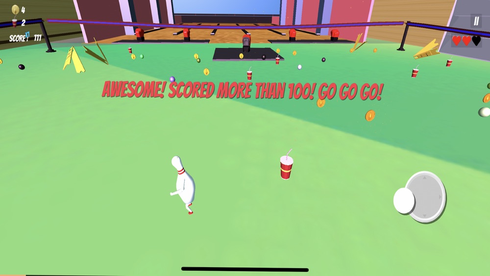 Super Pin is the unique full-of-life, rebellious bowling pin who refuses to just stand there to get knocked down. Super Pin has decided to make the best of the after hours and run around the parlor. Help Super Pin on this adventure by keeping it safe from all the bowling balls out to get it.