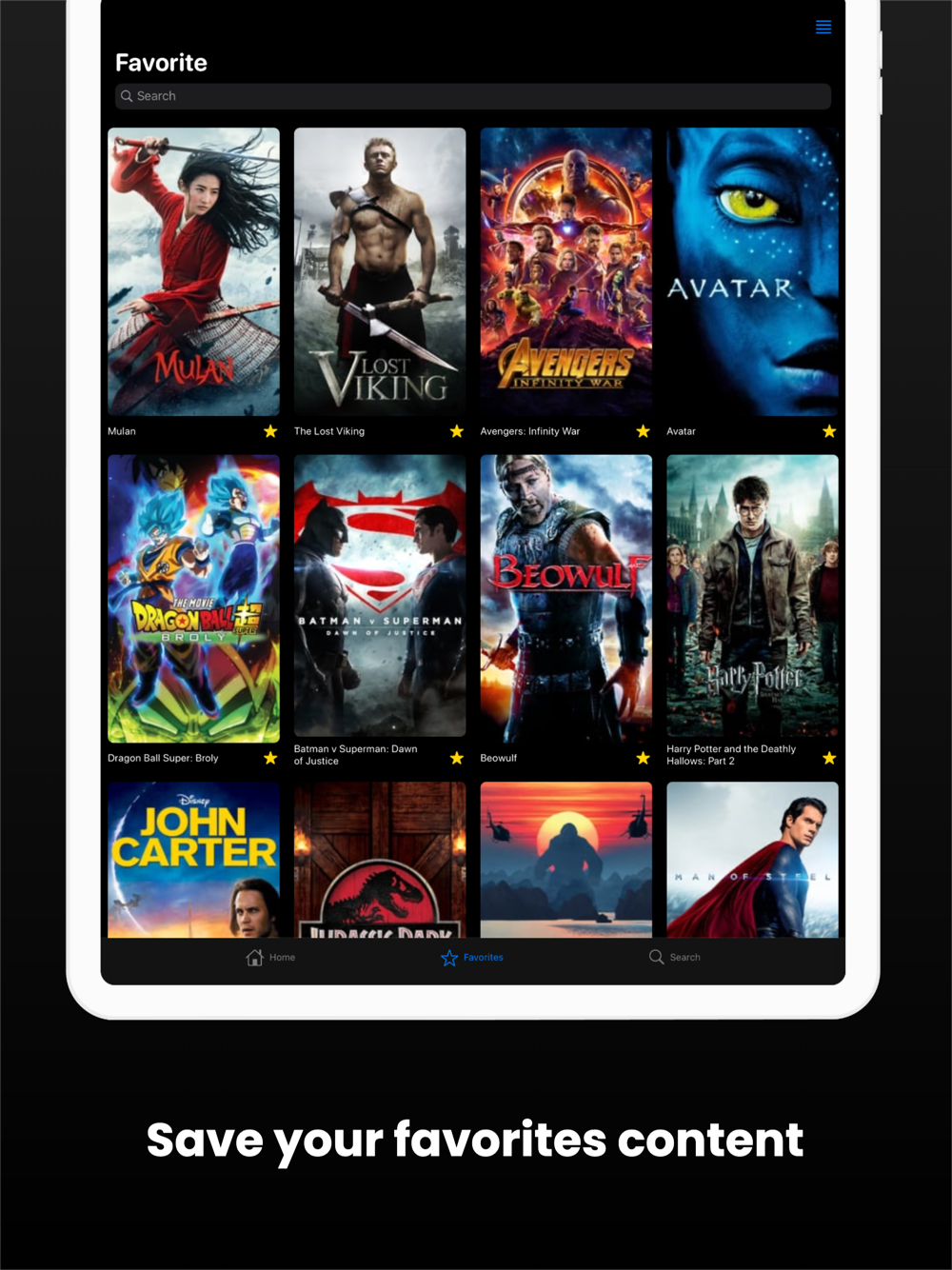- Search Movie, TV Series and Live channels;