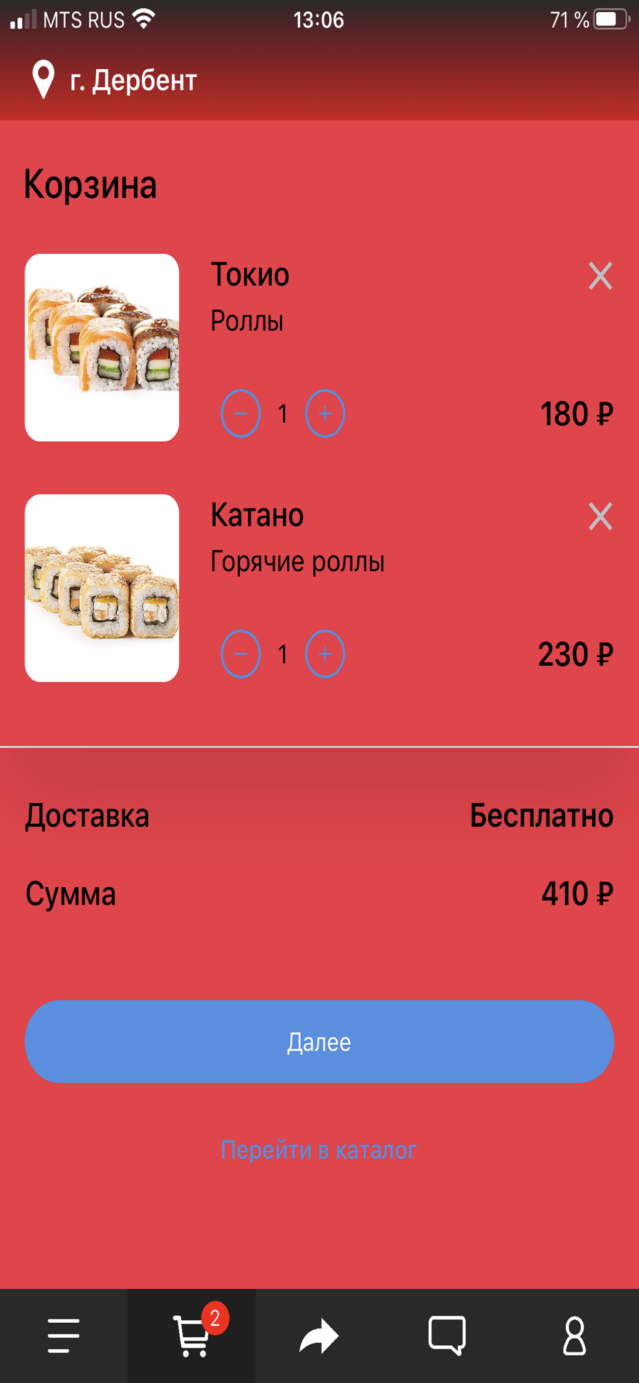 Доставка японской и европейской кухни домой и в офис, г. Дербент, г. Каспийск