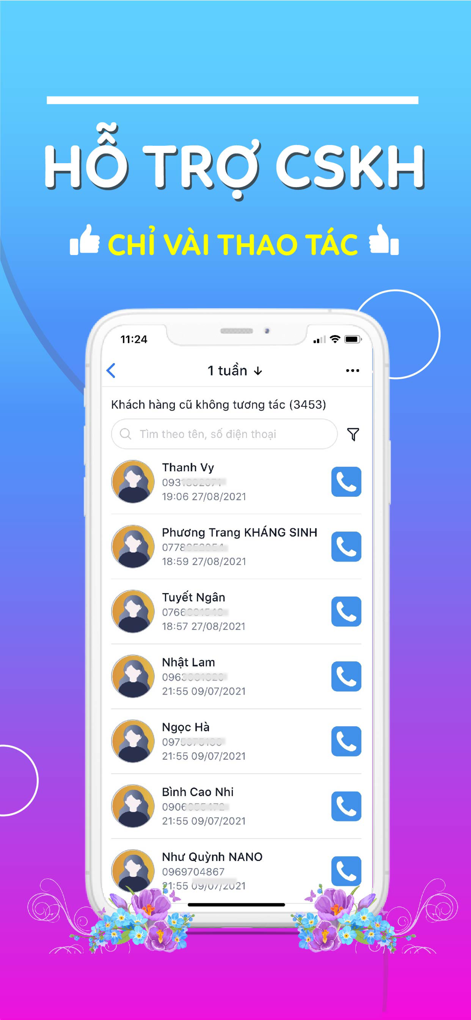 Dịch vụ: hệ thống sẽ tự động gửi tin nhắn CSKH sau 1 khoảng thời gian làm đến làm dịch vụ